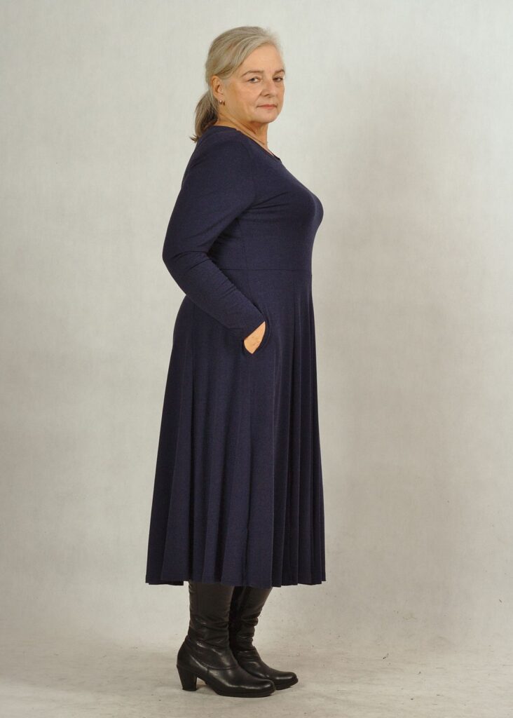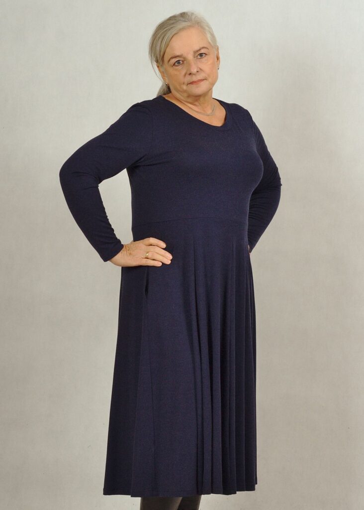 Kieszenie sprawiają, że sukienka staje się bardzo wygodna, odcięcie w talii pięknie podkreśla sylwetkę.