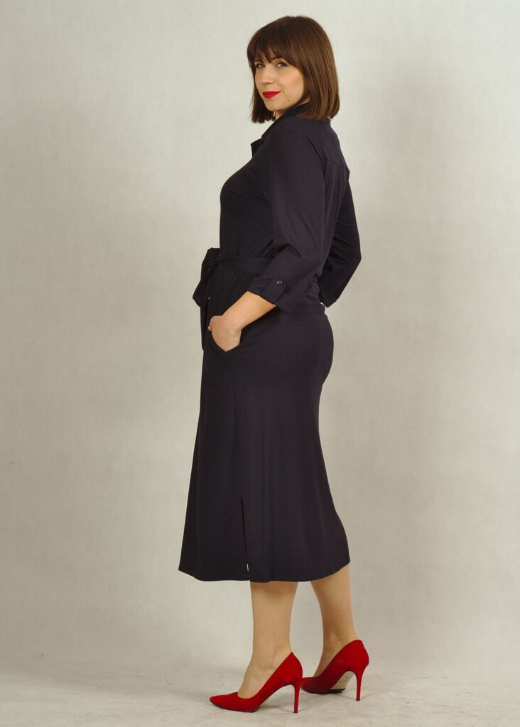 Szmizjerka z paskiem, który jest wykonany z tego samego materiału, pięknie podkreśli talię.