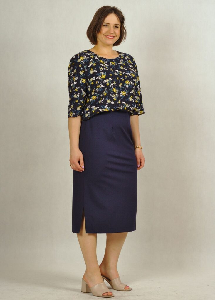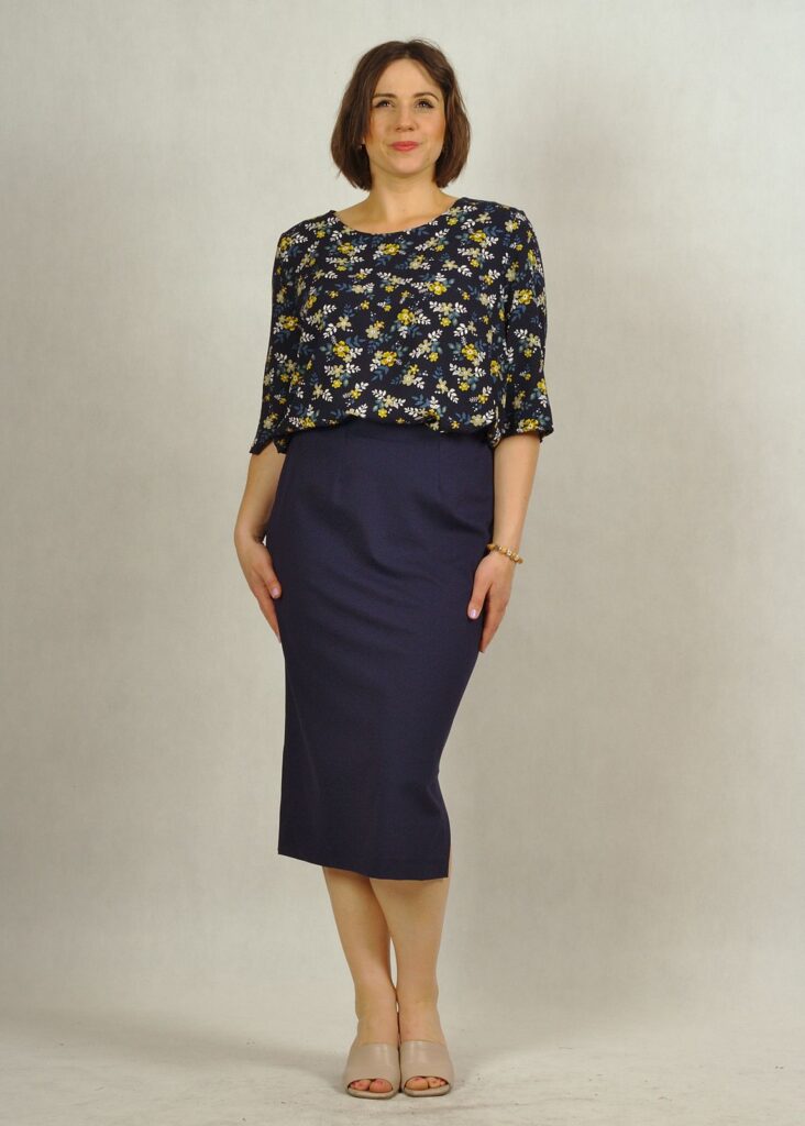 Spódnice, zwłaszcza te ciemniejsze dopasujesz z łatwością. Podkreślając talię, pamiętaj że możesz bluzkę włożyć do środka.