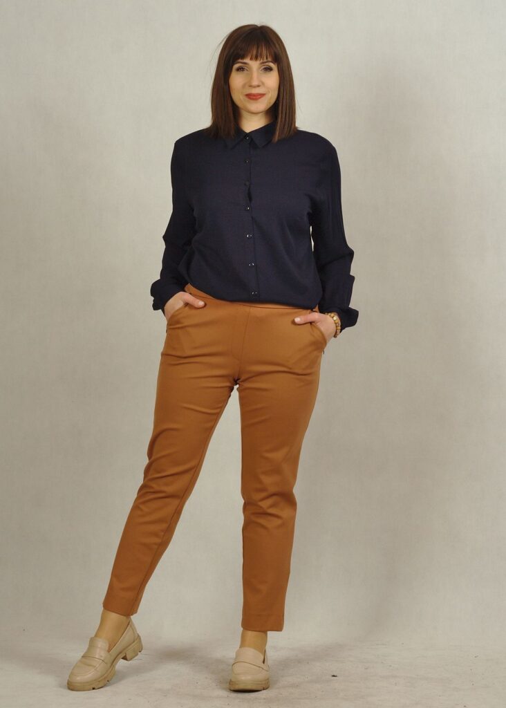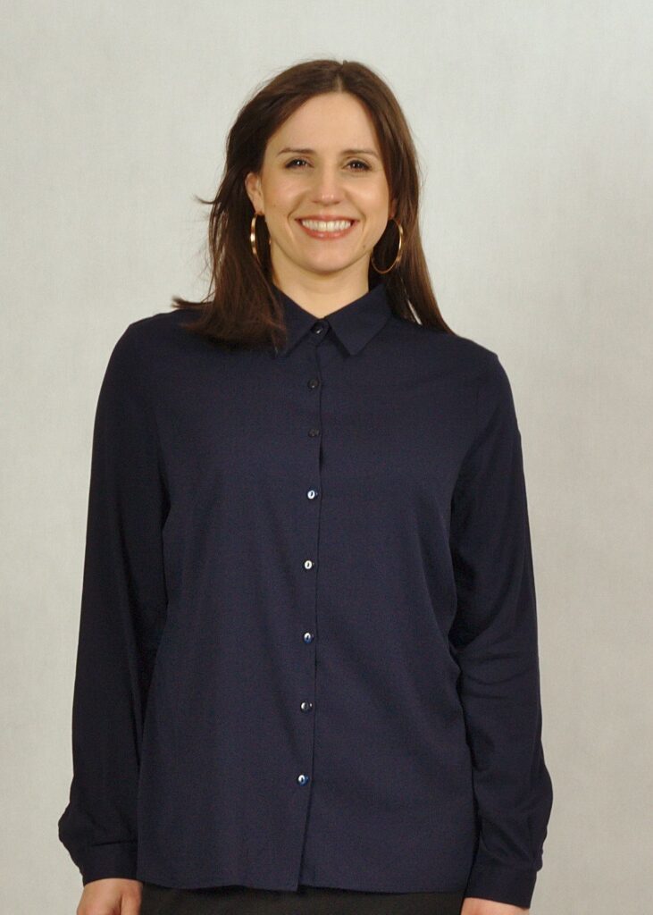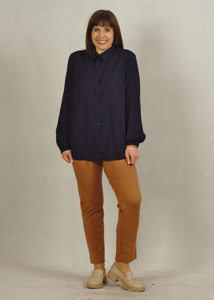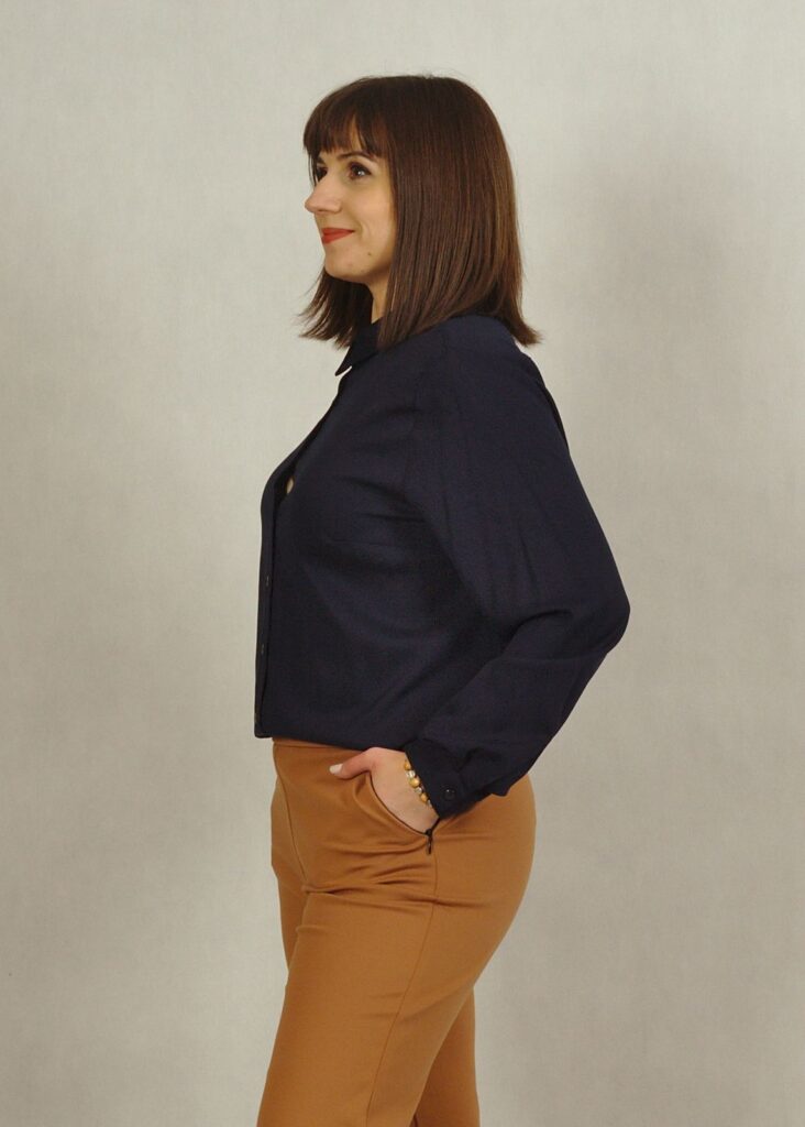 Klasyczna, ponadczasowa, elegancka bluzka koszulowa w kolorze granatowym to bazowa bluzka w Twojej szafie.