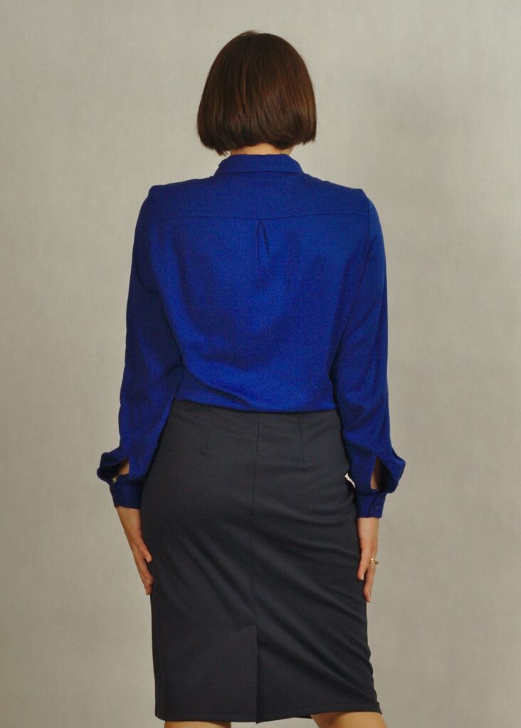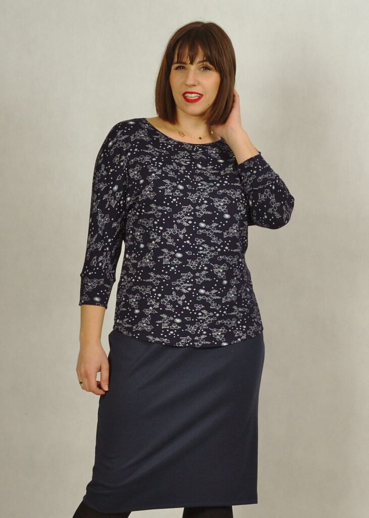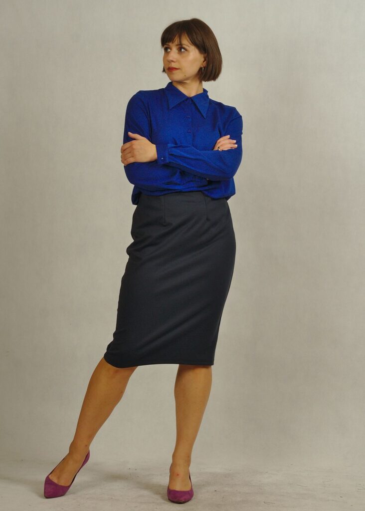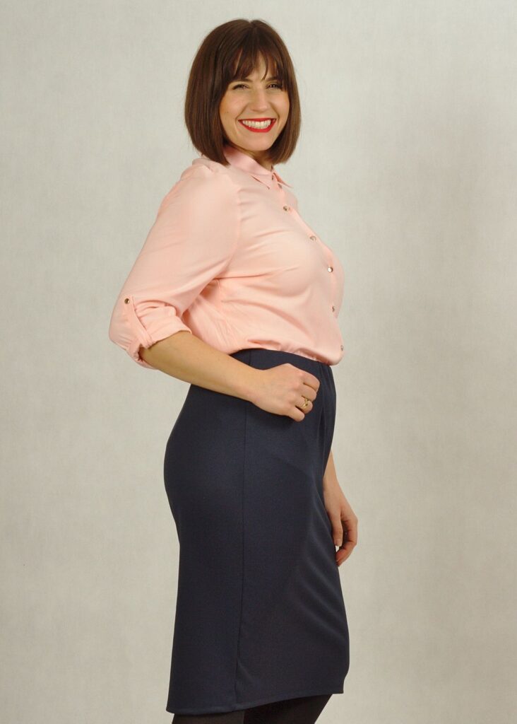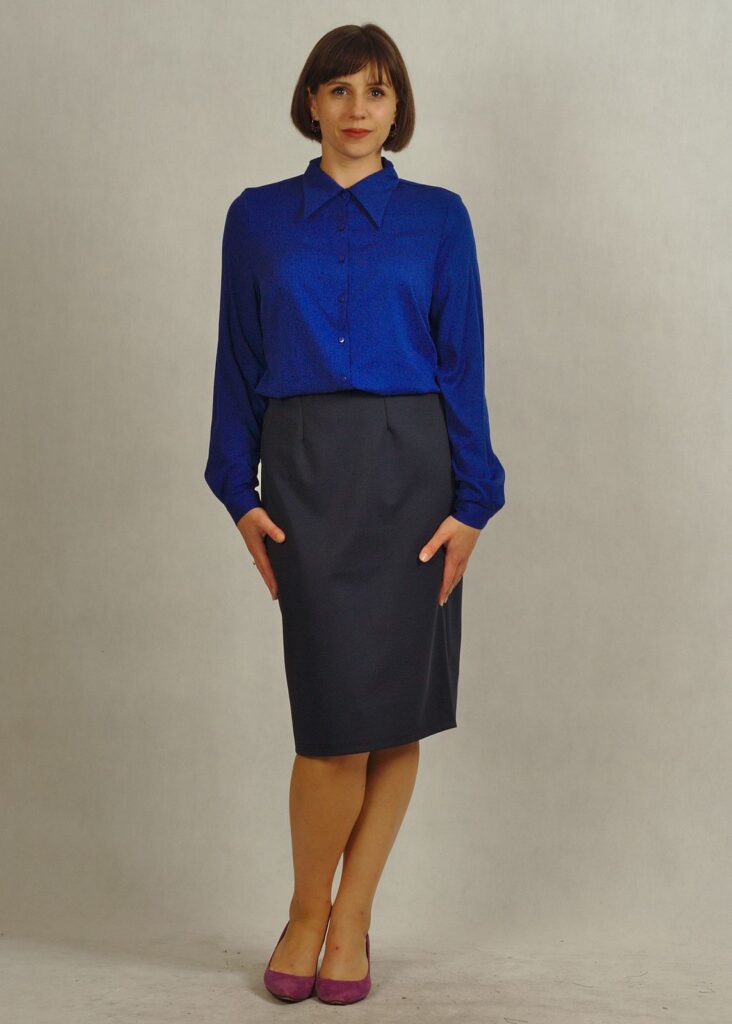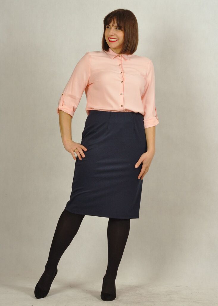 Spódnica ma długość delikatnie za kolano.