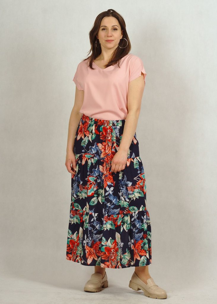 Spódnica jest na szerokiej gumce, jest bardzo wygodna w użytkowaniu. Posiada kieszenie, często jest to dobry argument przy wyborze.