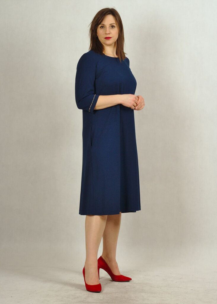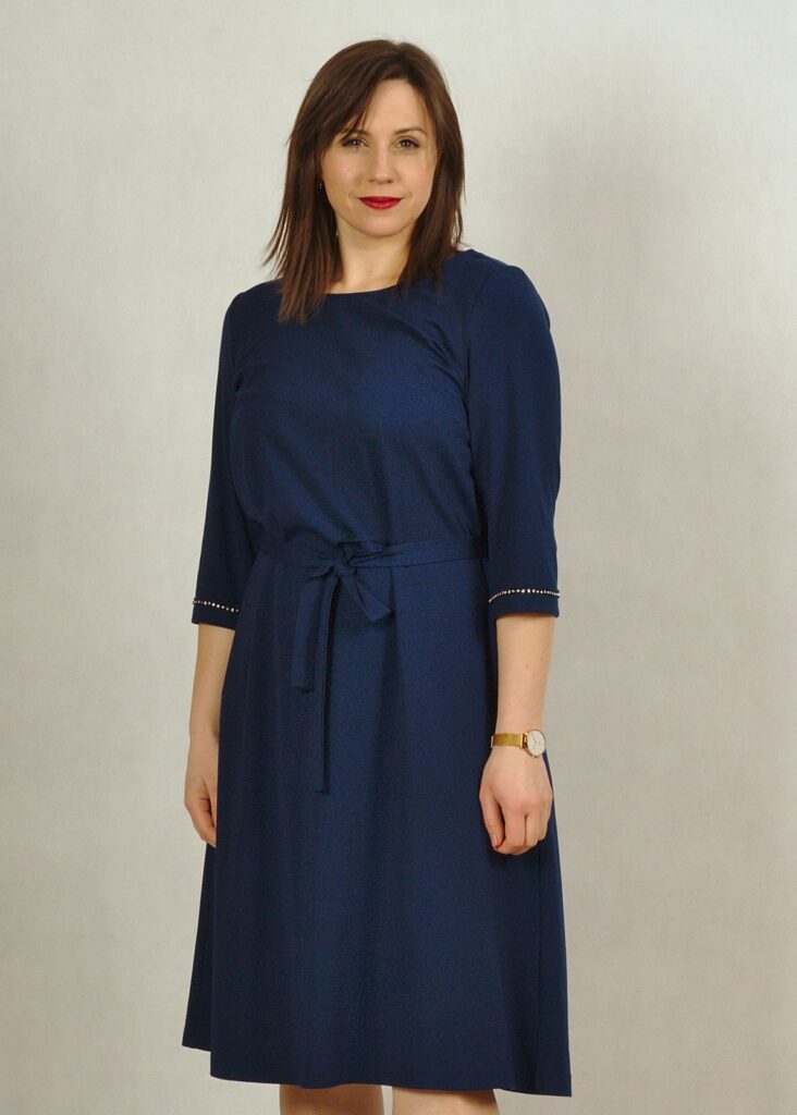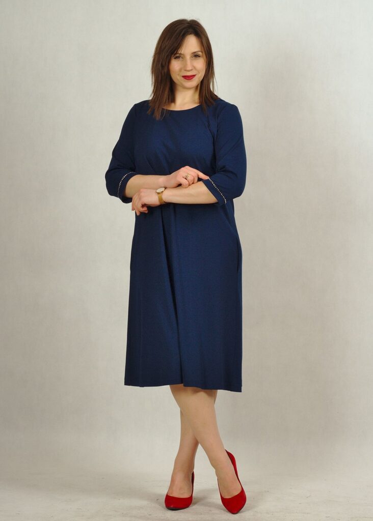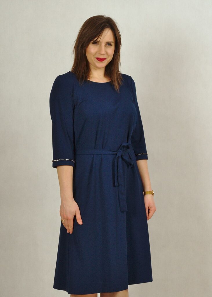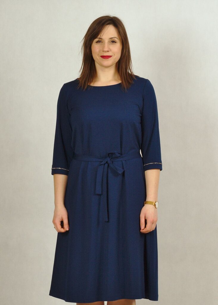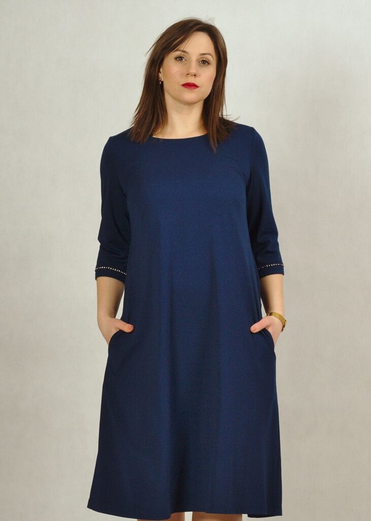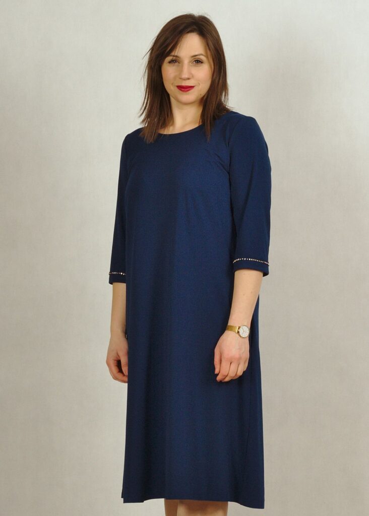 Granatowa sukienka trapezowa ze zdobieniami plus size /753/