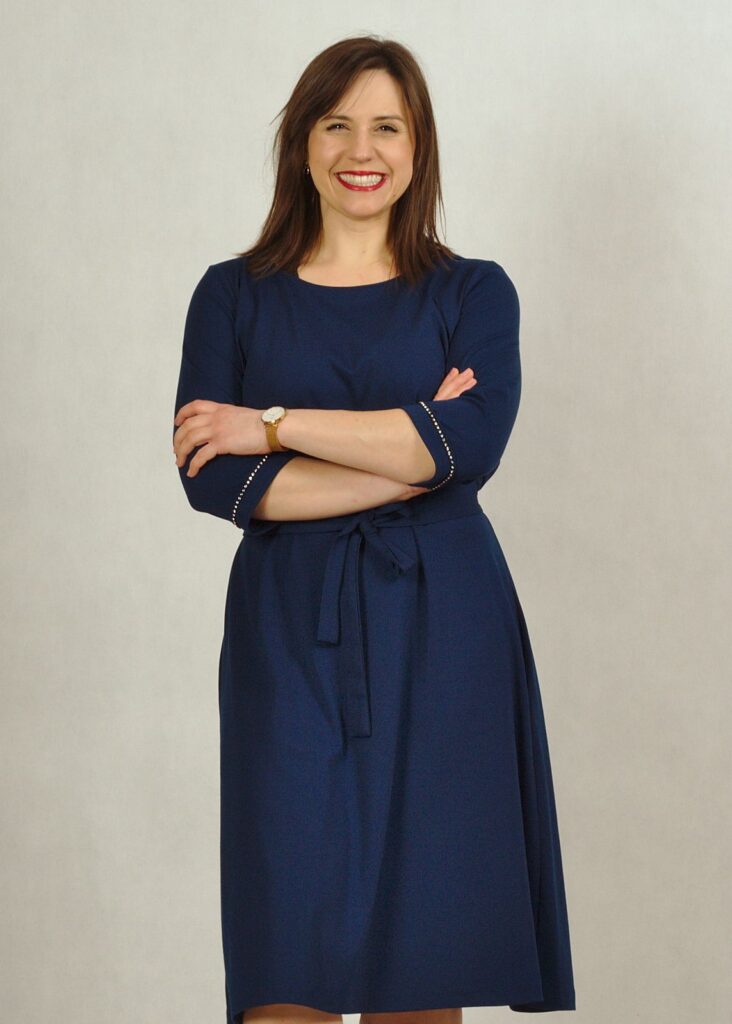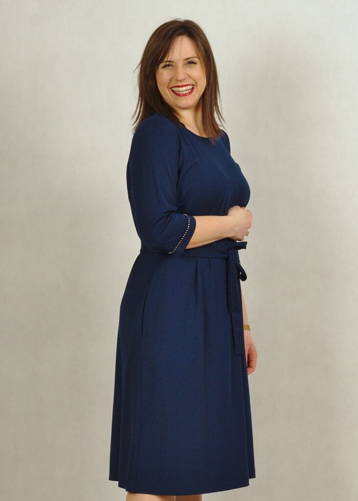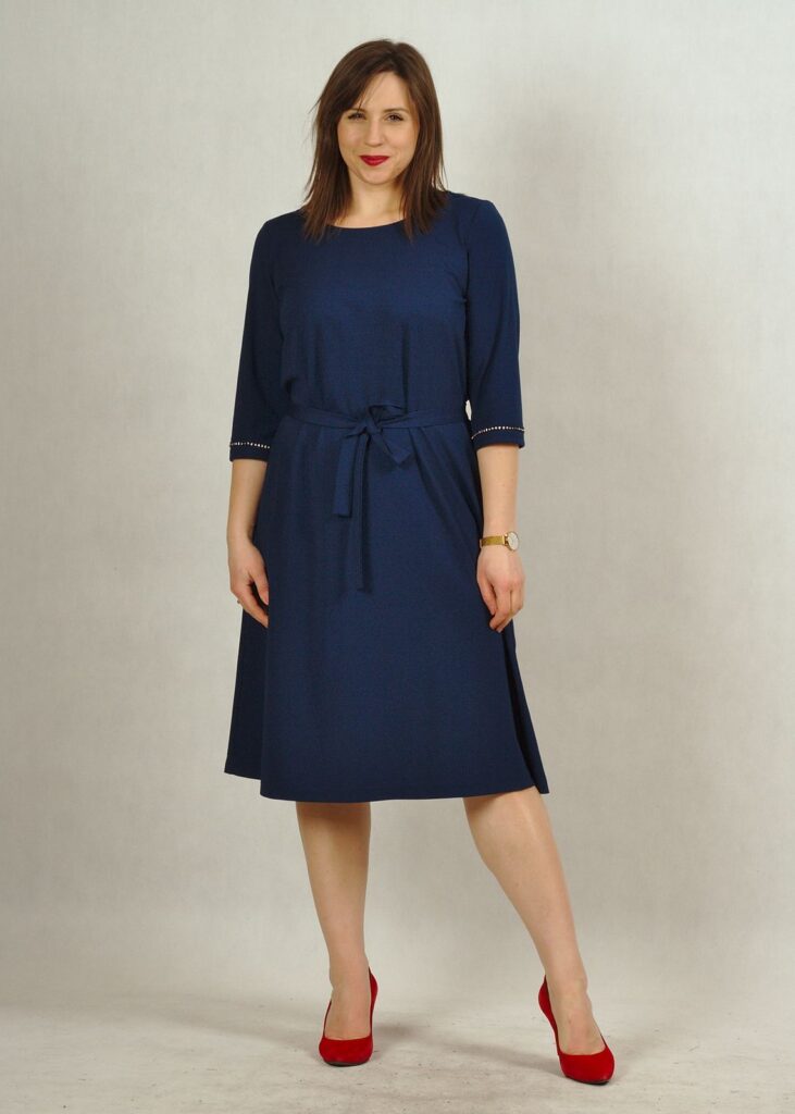 Sukienka misternie uszyta z granatowej* dzianiny z wiskozą, to propozycja na większe wyjścia lub na co dzień, jeśli lubisz elegancki styl.