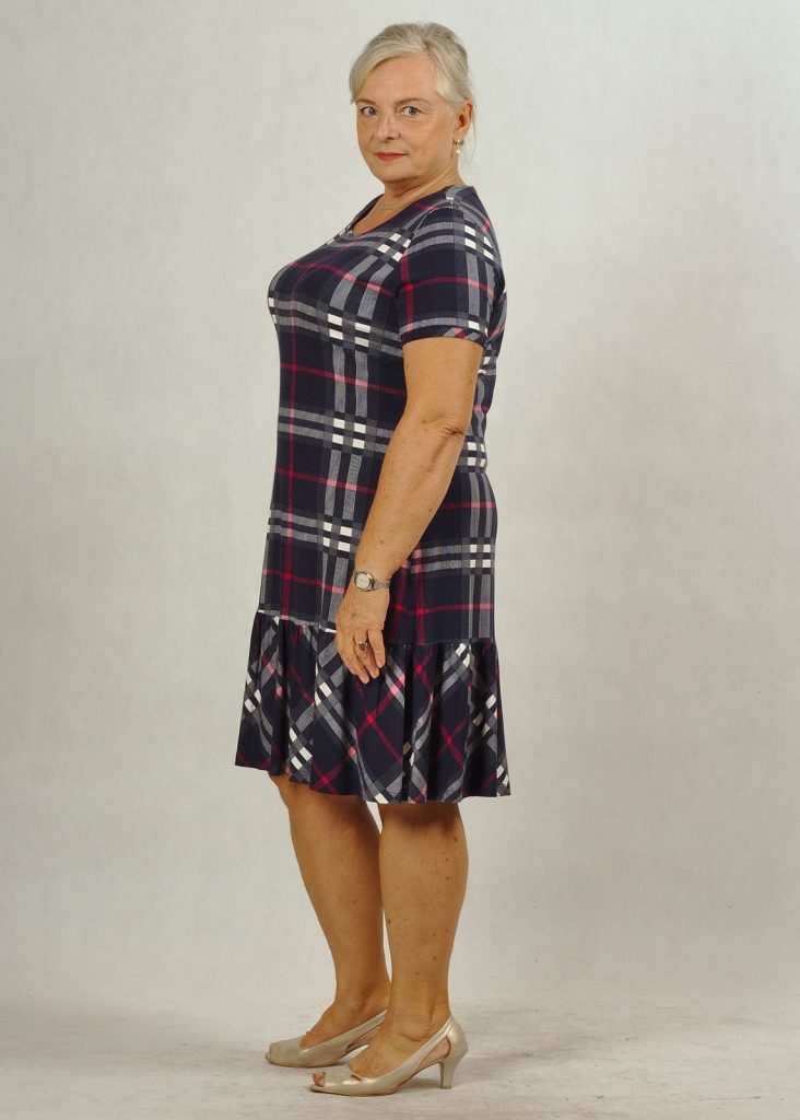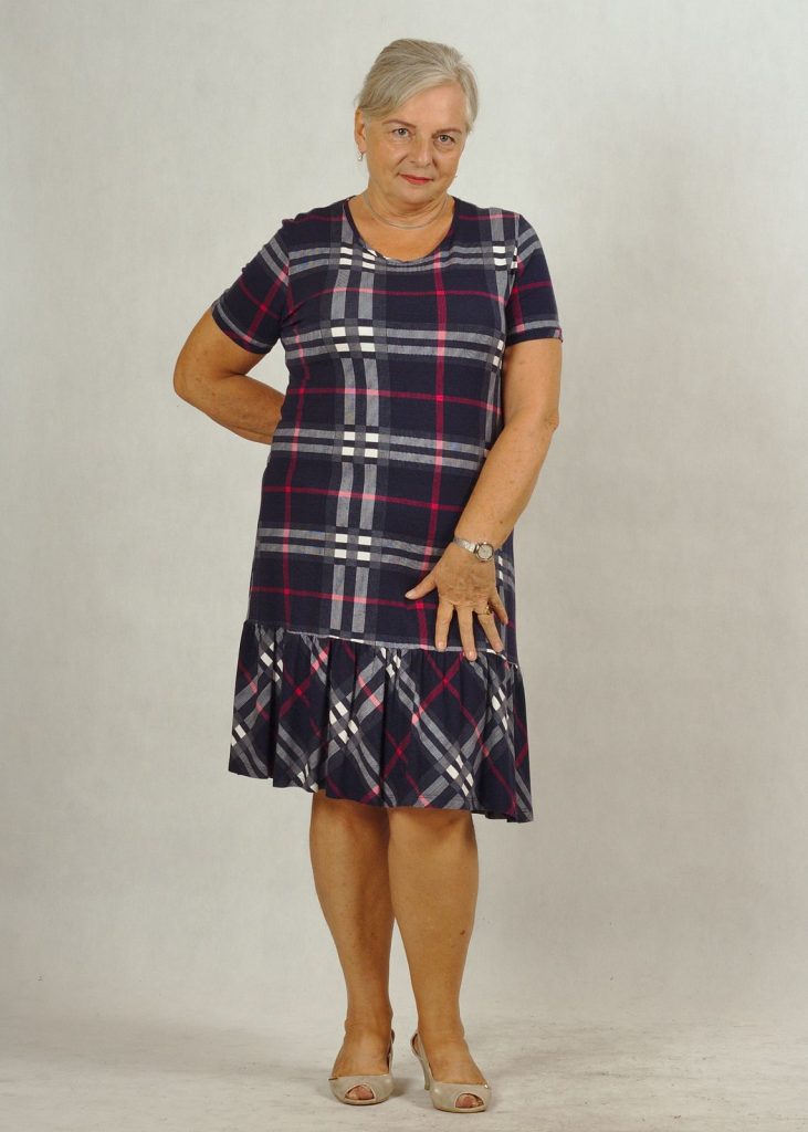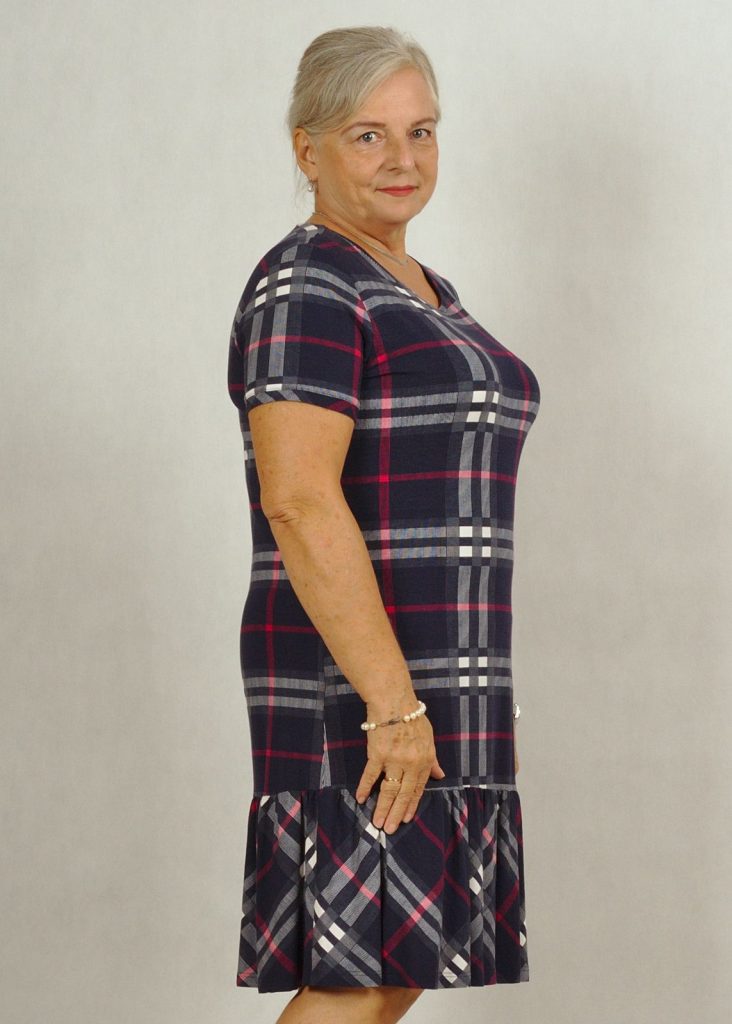 Świetna dzianinowa sukienka z falbanką u dołu i krótkim rękawem.