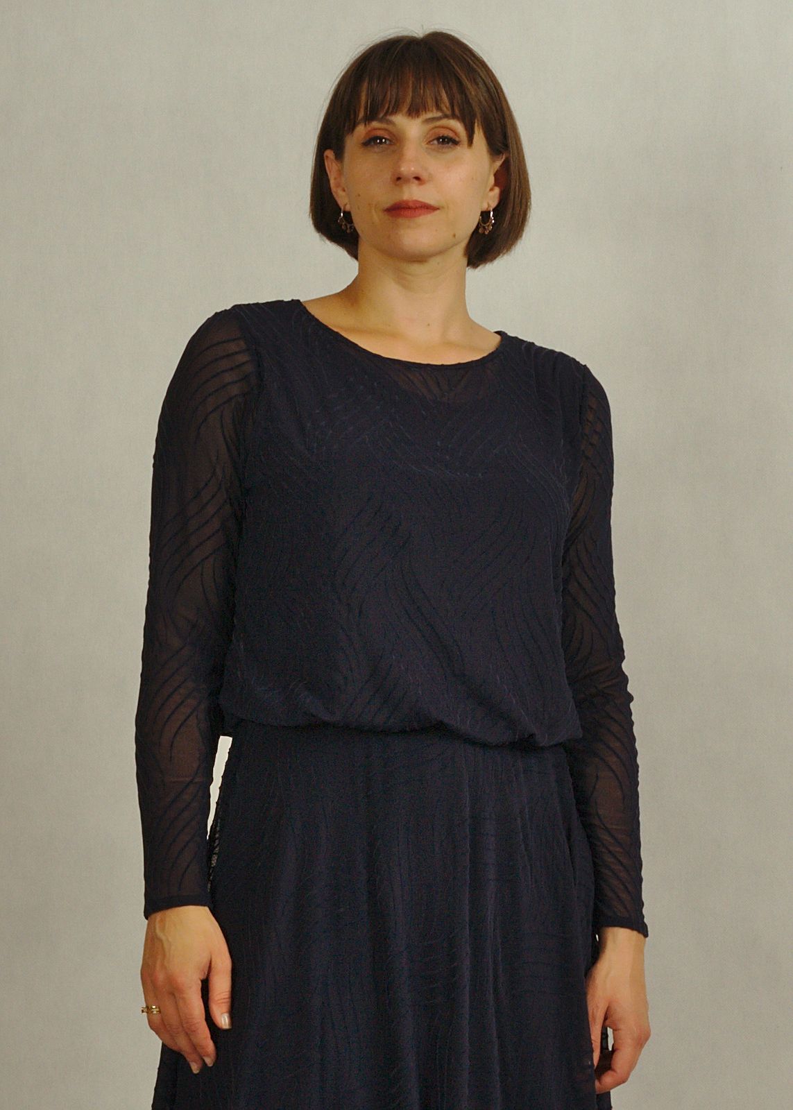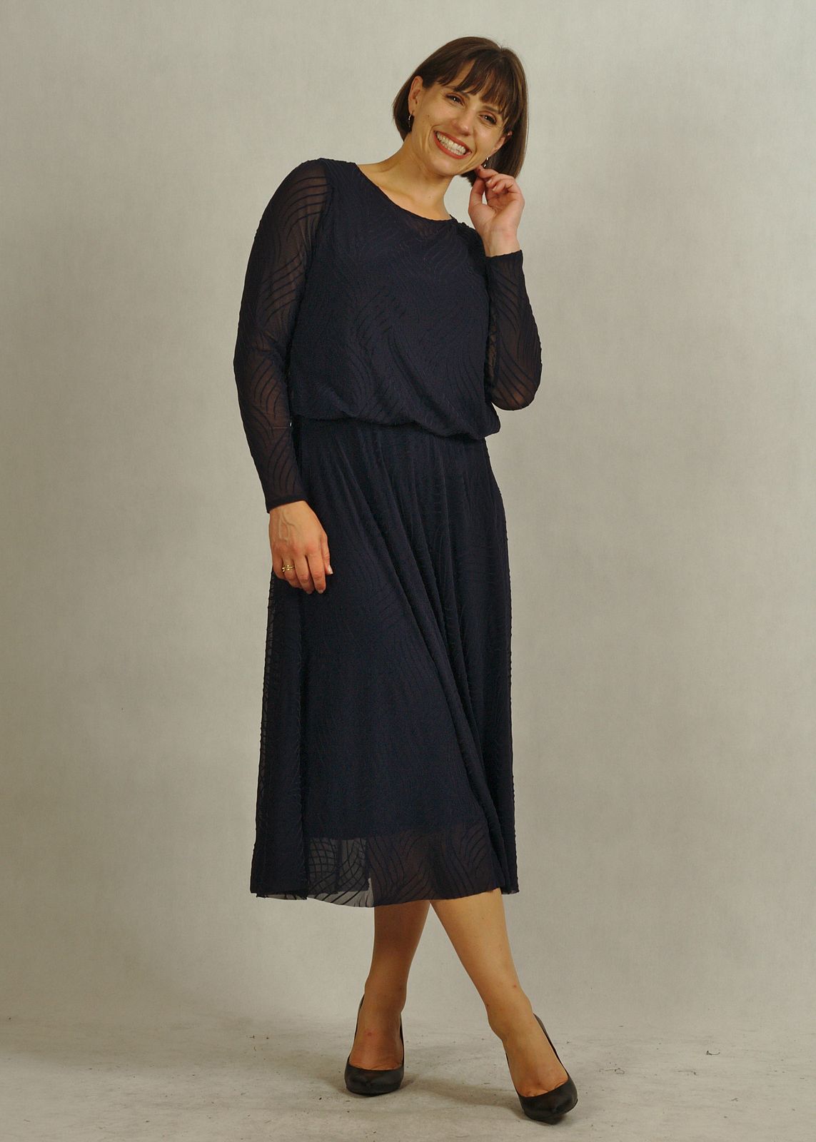 Sukienka granatowa to klasyka w świecie, gdzie odzież damska i ubrania damskie łączą elegancję z wygodą.Ten model ma śliczną strukturę materiału – sukienka nie jest gładka, ma zdobienia,które dodają jej elegancji i oryginalności.
