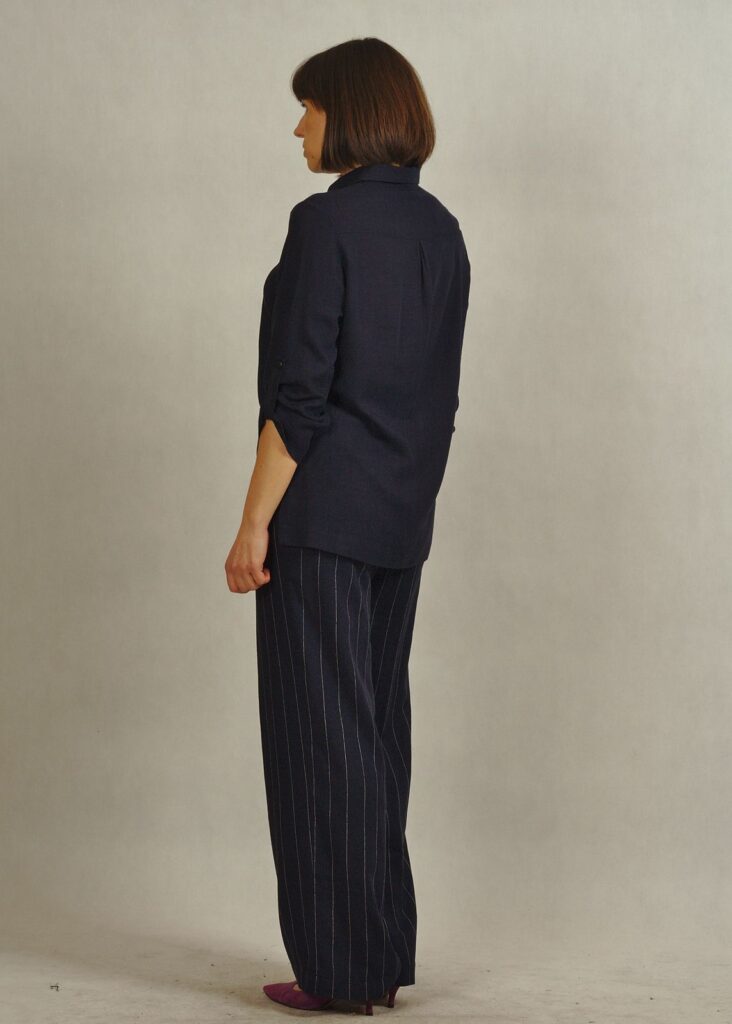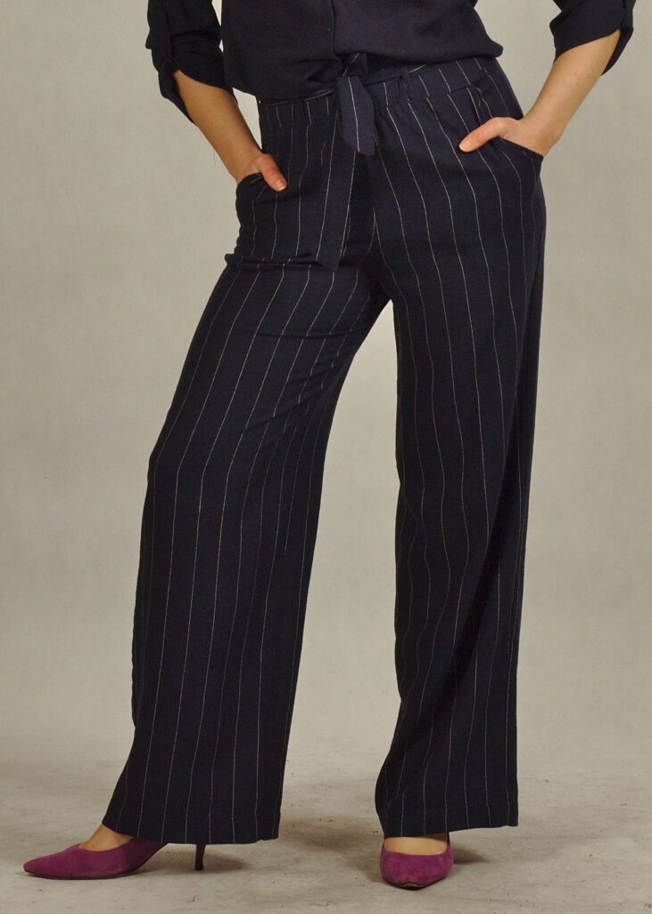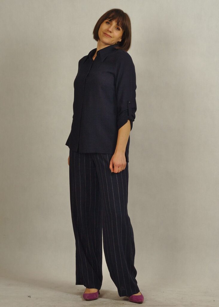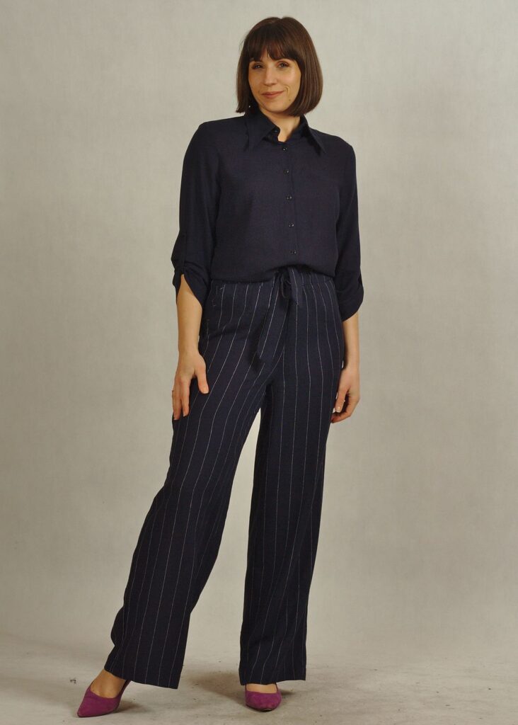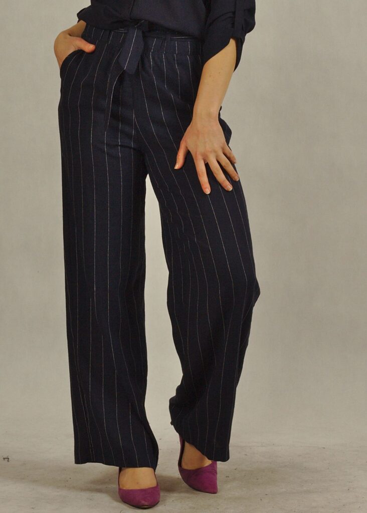 Granatowe spodnie z lnem i wiskozą to idealne połączenie stylu, wygody i przewiewności.