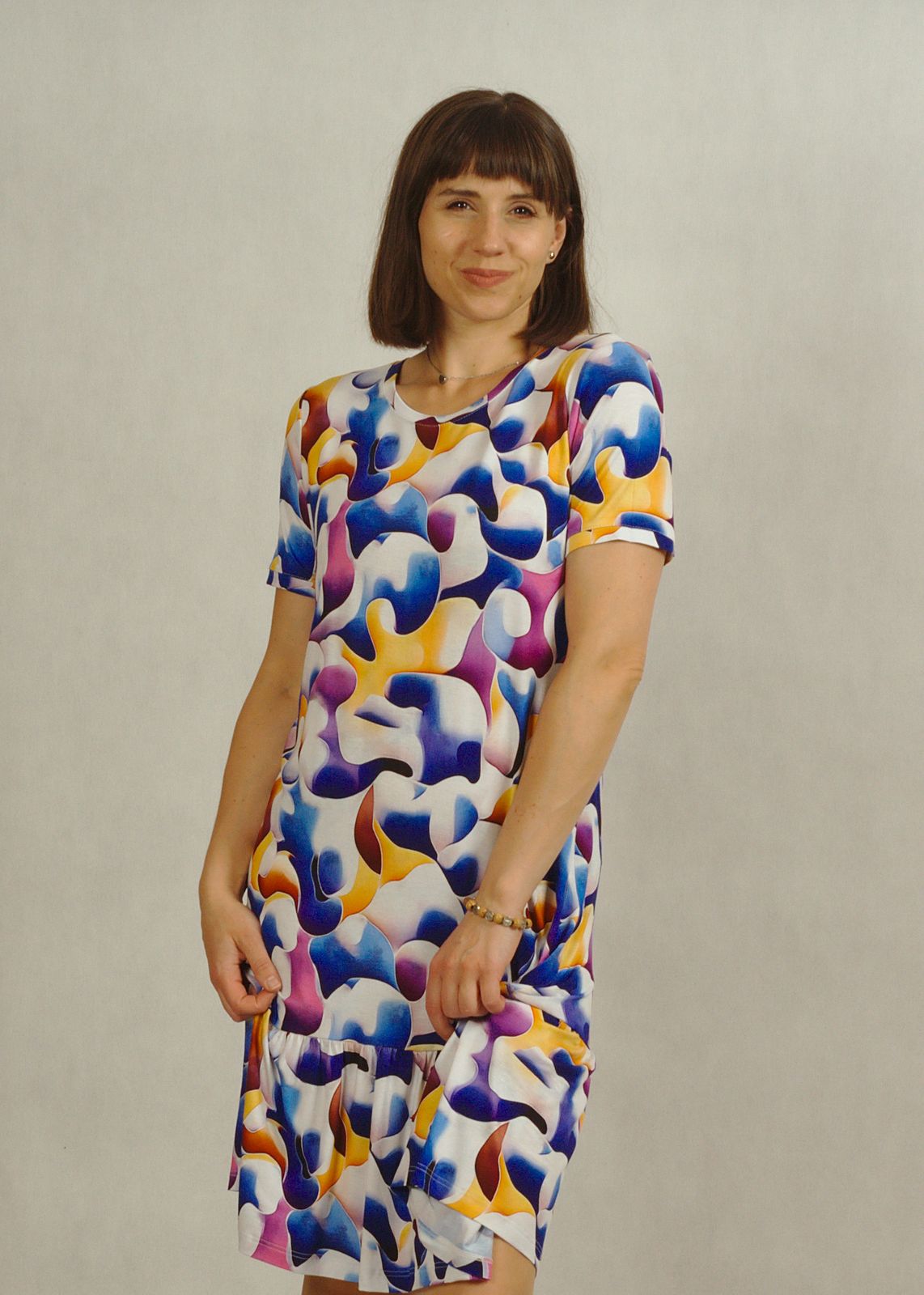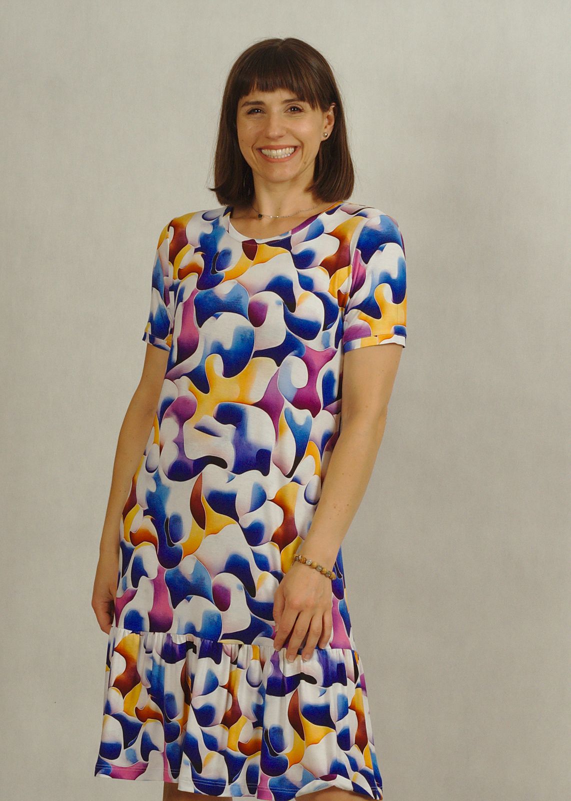 Wybierz tę jasną sukienkę w oryginalny wzór, która będzie uniwersalnym i wygodnym elementem Twojej letniej garderoby.