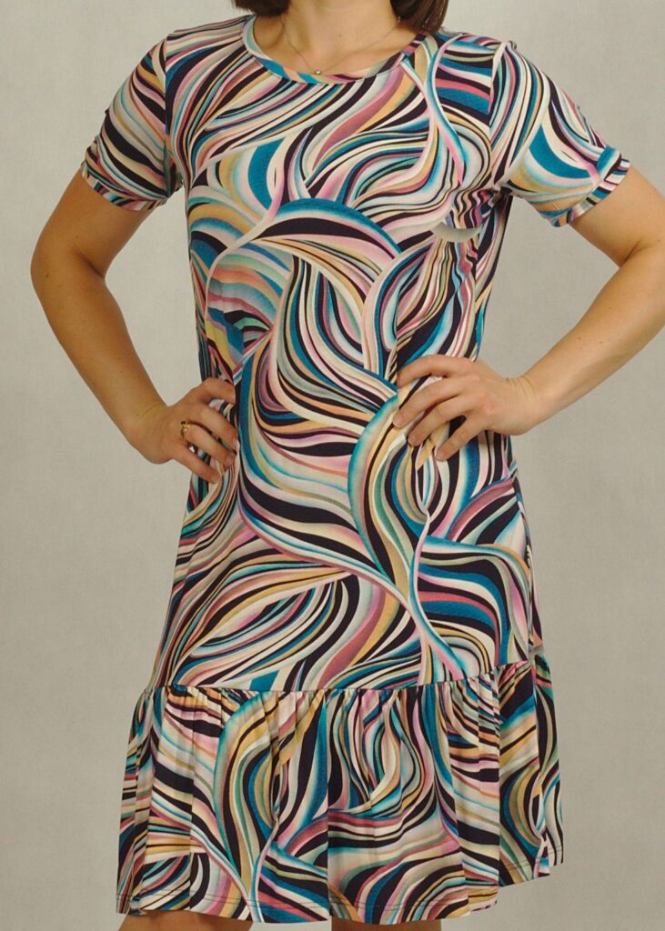 Sukienka z dzianiny wiskozowej pięknie układa się na sylwetce i doskonale wpisuje się w modę plus size.