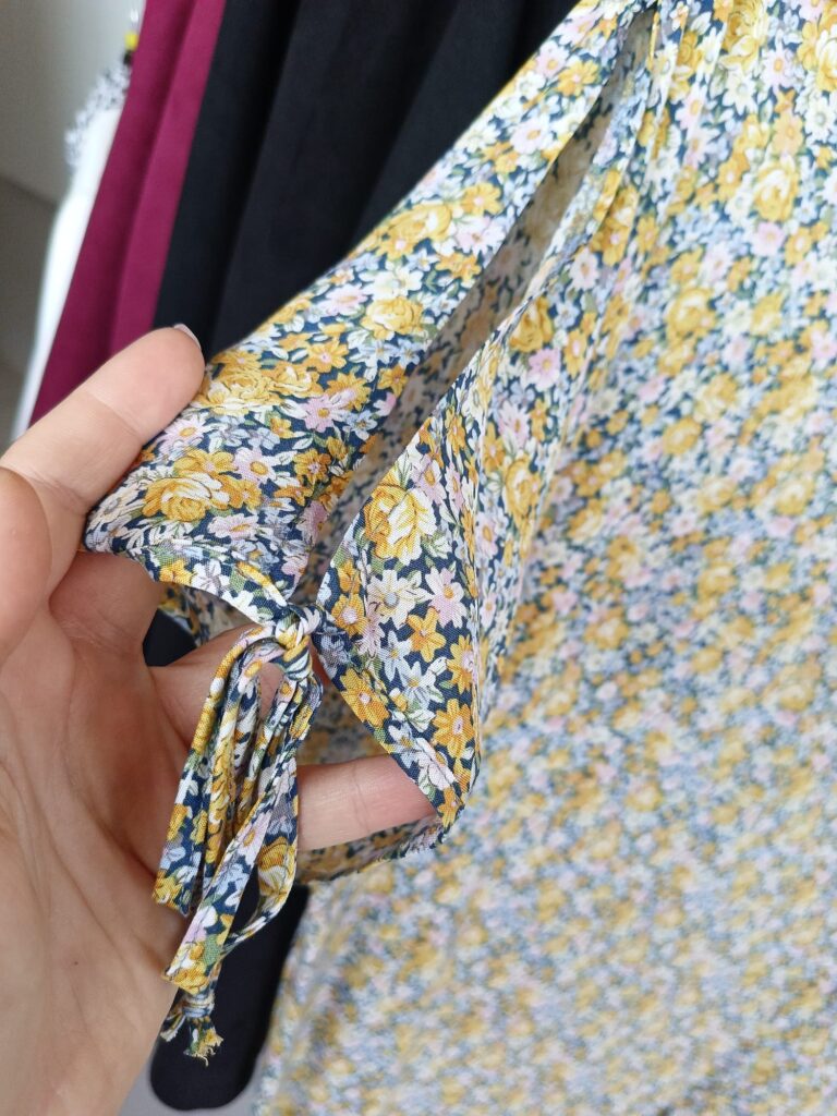 Sukienka z rozcięciem na ramieniu i wiązaniu przy rękawach pięknie wyeksponuje Twoje ramiona!