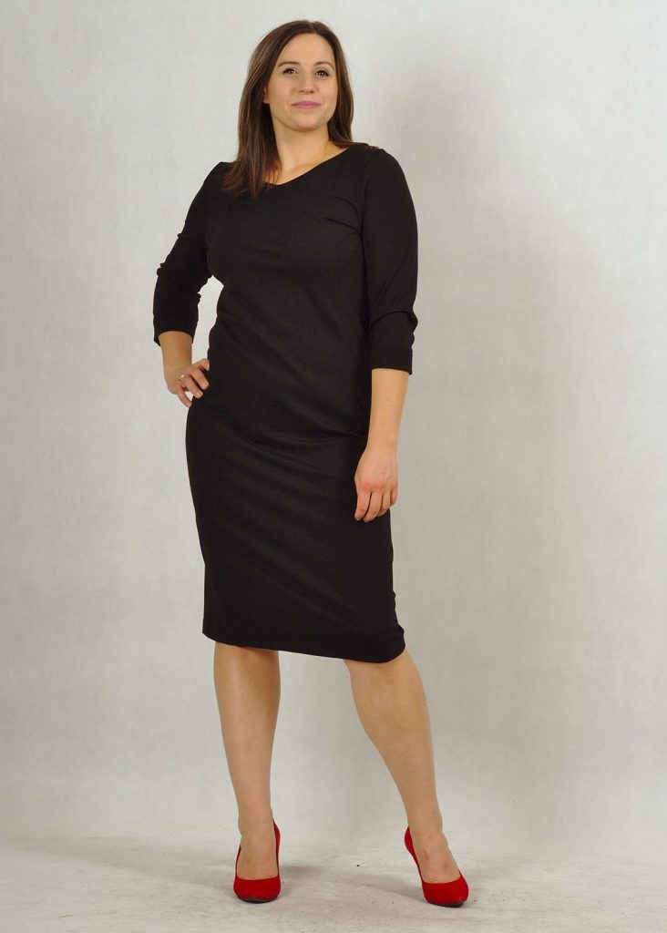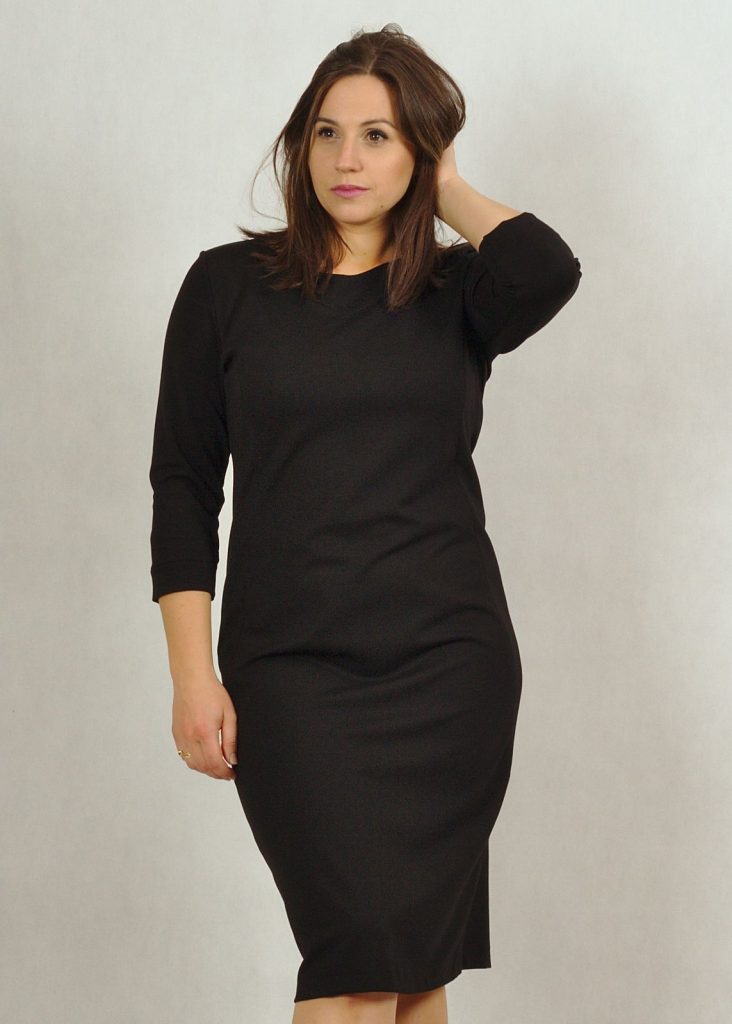 Sukienka ma doskonały fason. Przeszycia wzdłuż sylwetki podkreślają to, co piękne, a delikatnie tuszują niedoskonałości.
