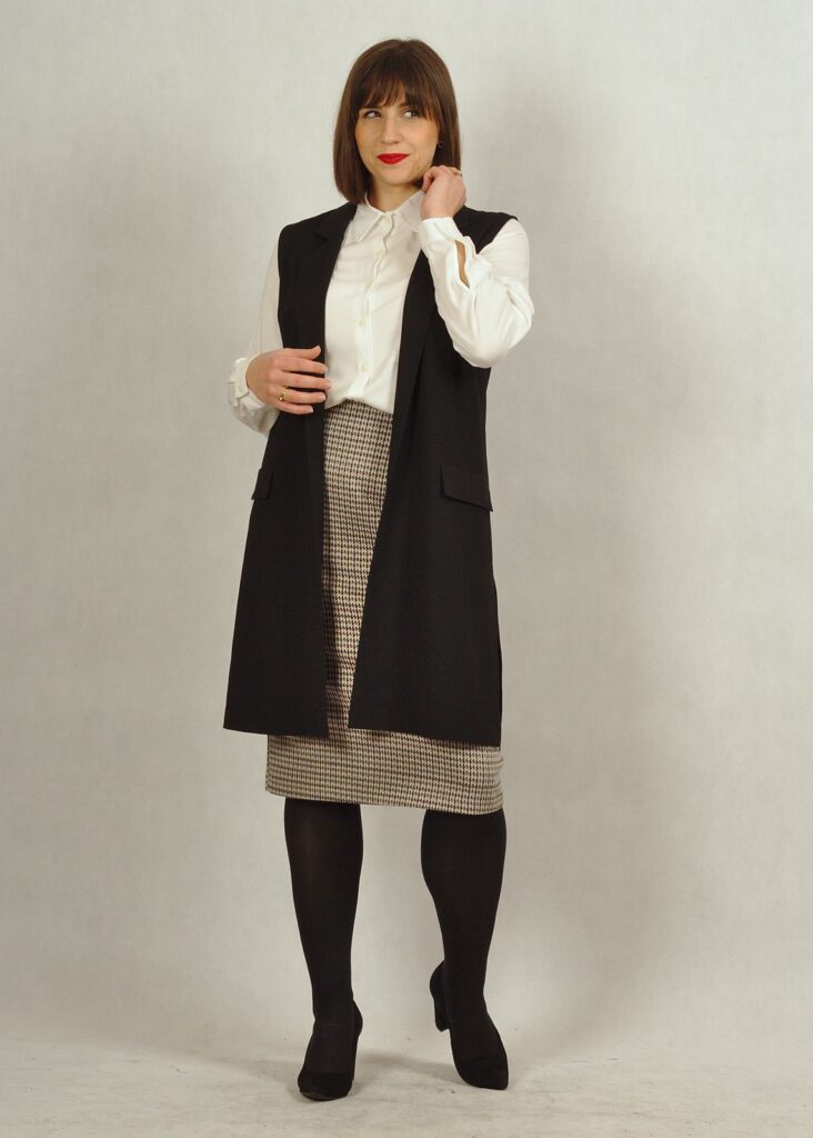 Kamizelka ta świetnie wygląda to spodni, spódnic i sukienek!