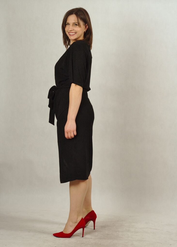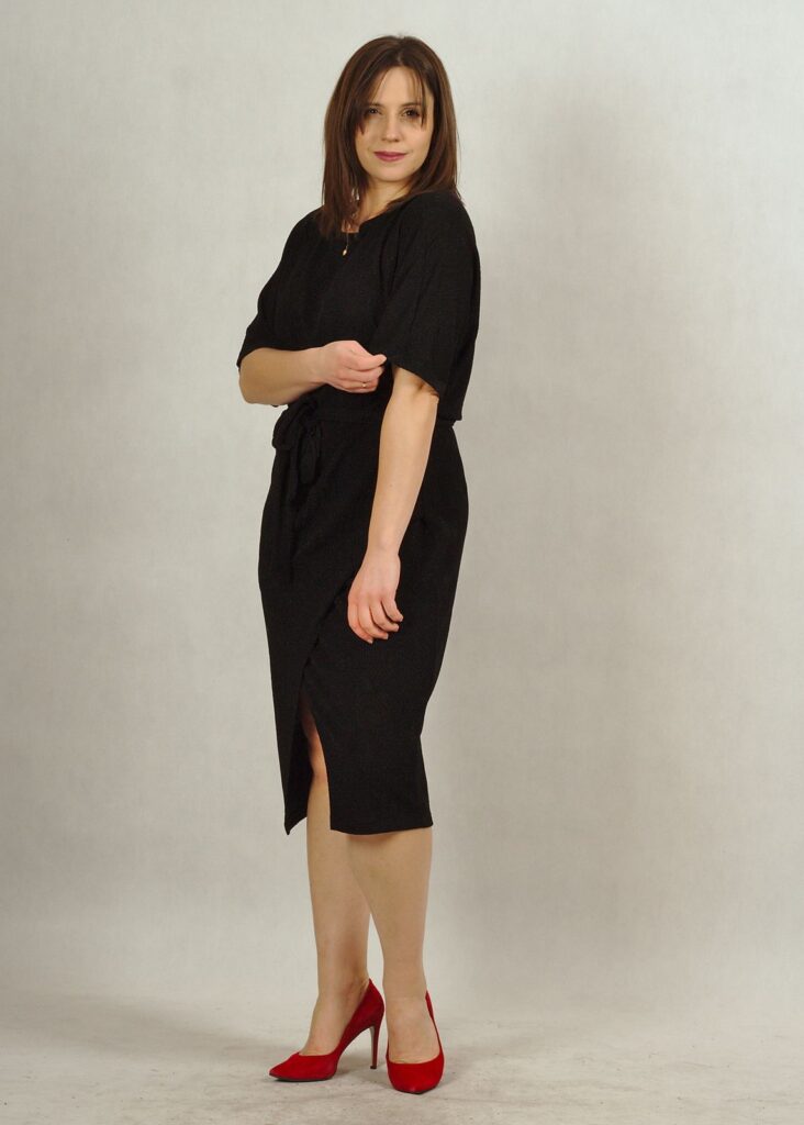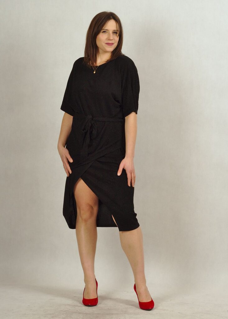 Sukienka czarna* z delikatnym połyskiem to propozycja na wiele okazji, ale z pewnością sprawdzi się na większe wyjście.