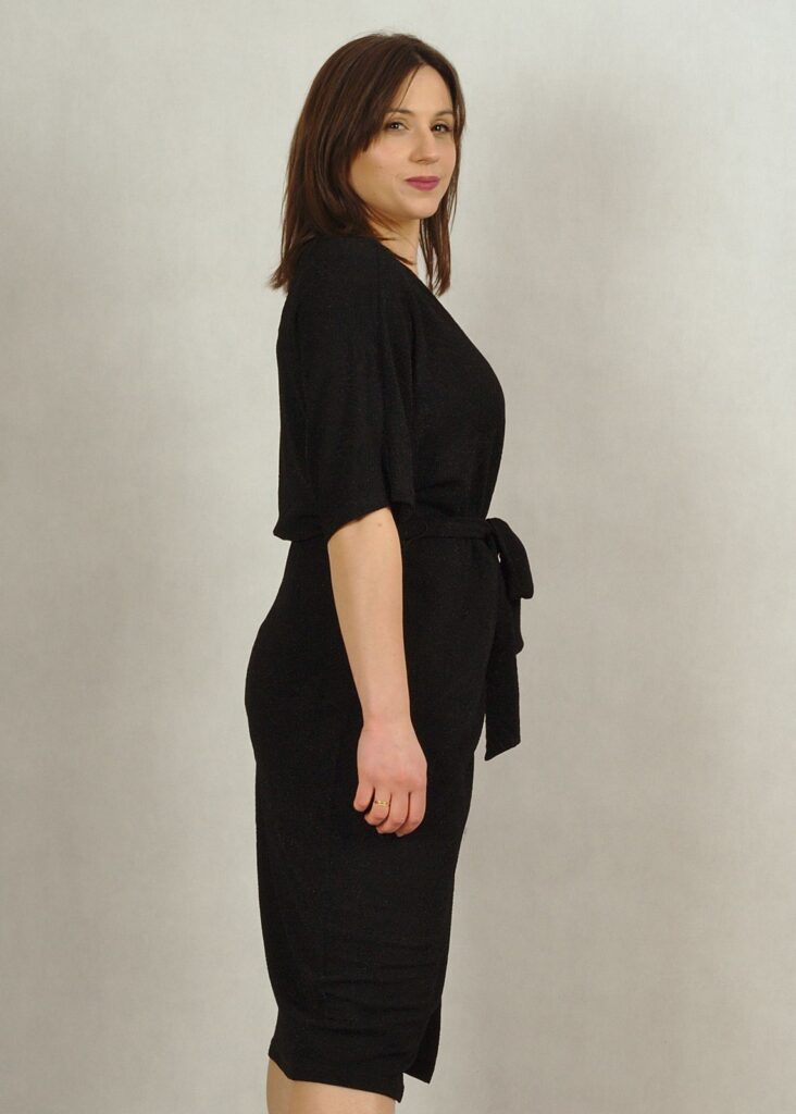 Sukienka posiada rękaw kimono, który doda elegancji i lekkości Twojej stylizacji.