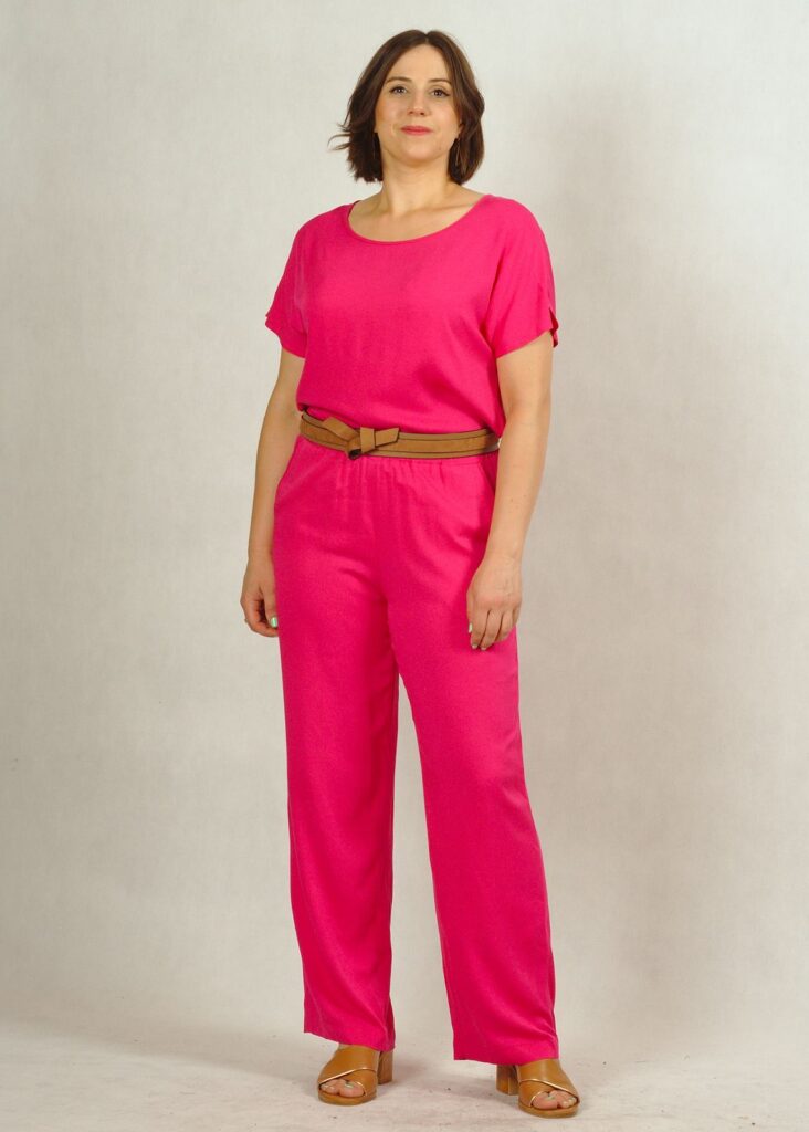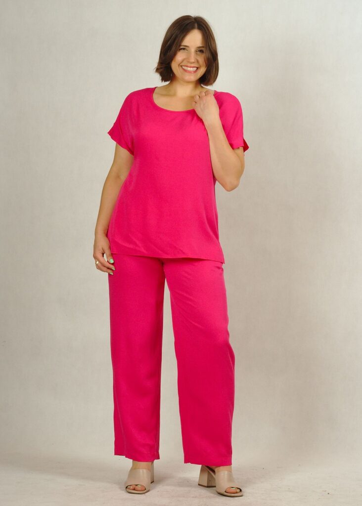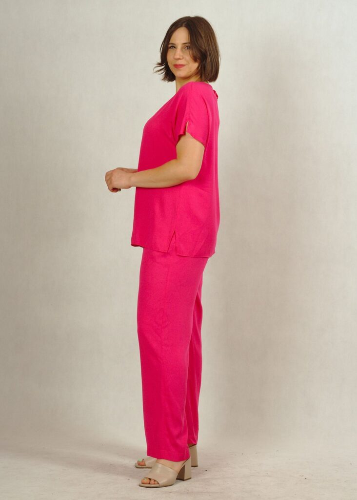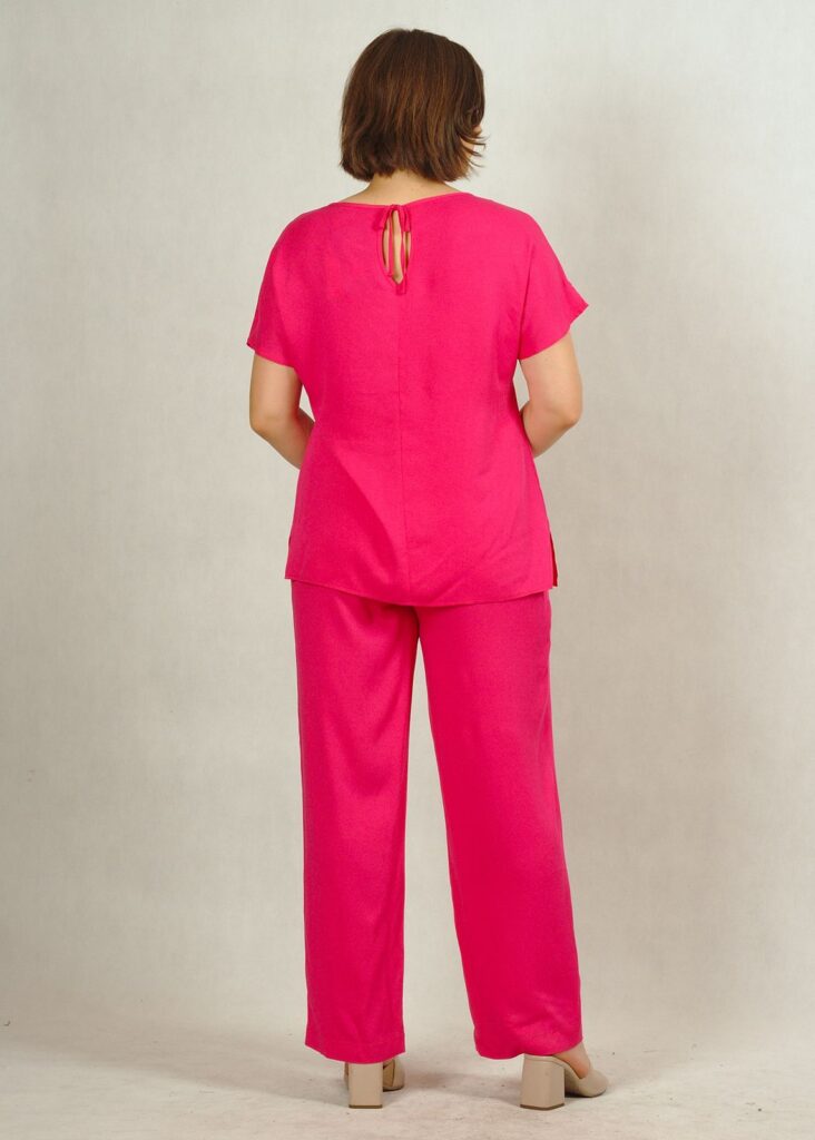 Komplet różowy – bluzka i spodnie z wiskozy 100% plus size /784/