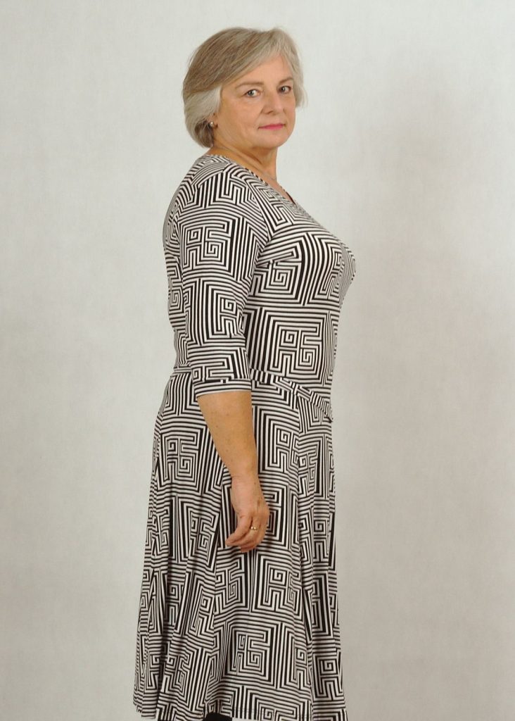 Sukienka uszyta w rozmiarach standard i plus size.