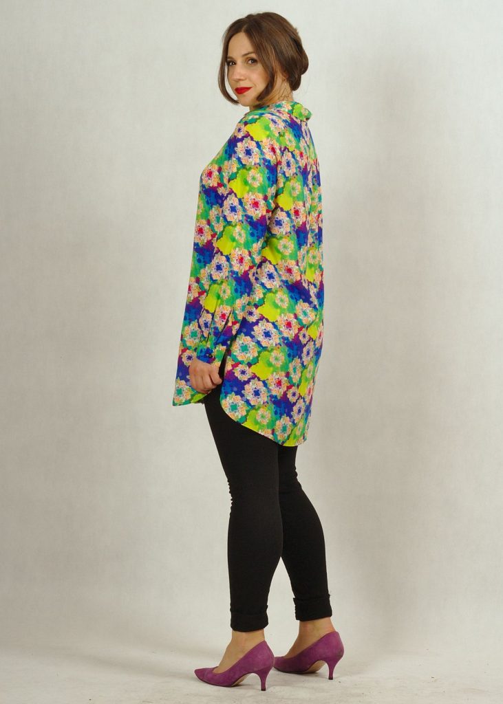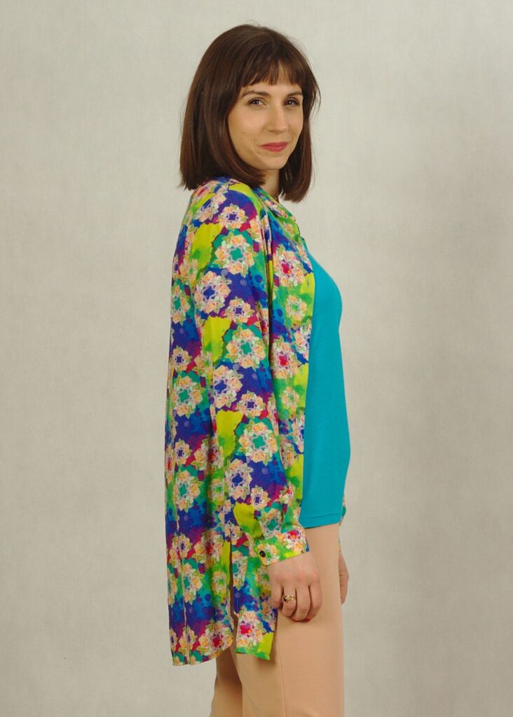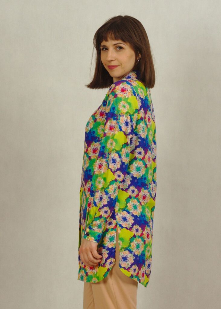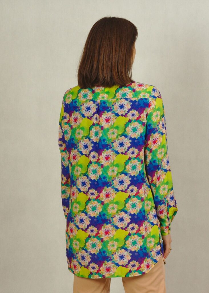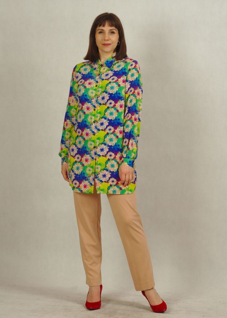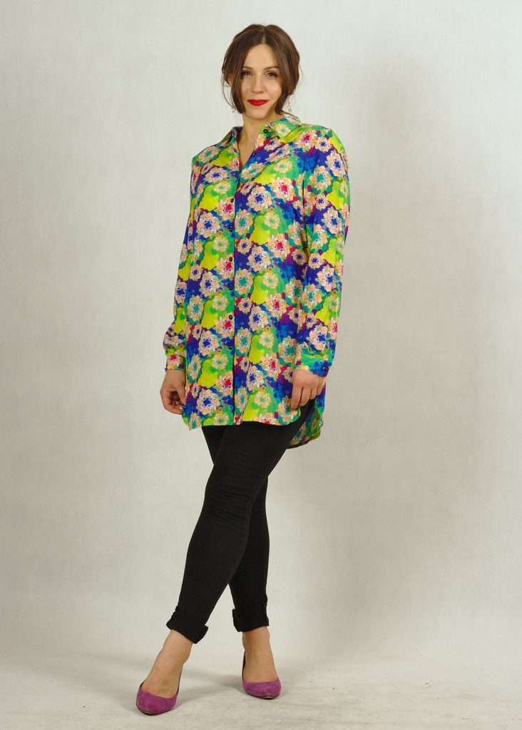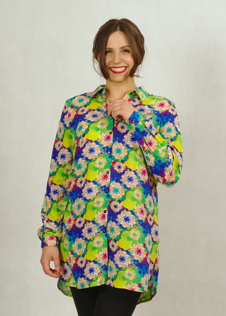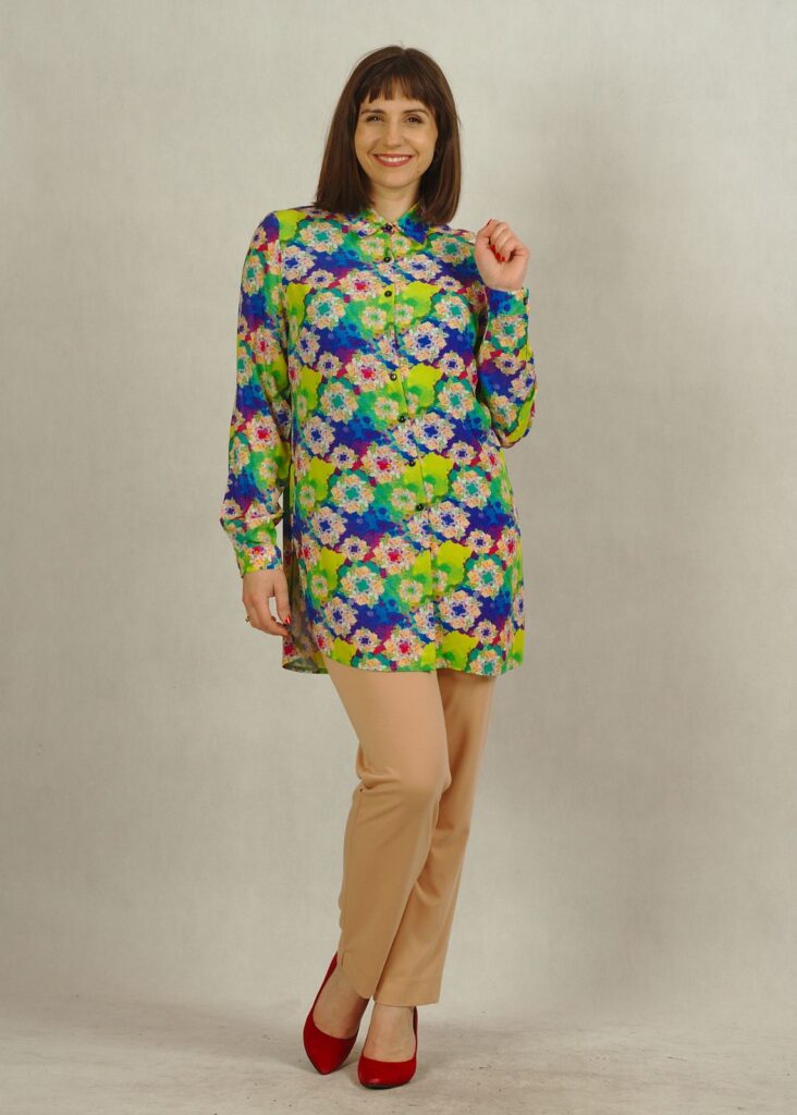 Ta długa koszula we wzory to świetna alternatywa dla tradycyjnych koszul i tunik.