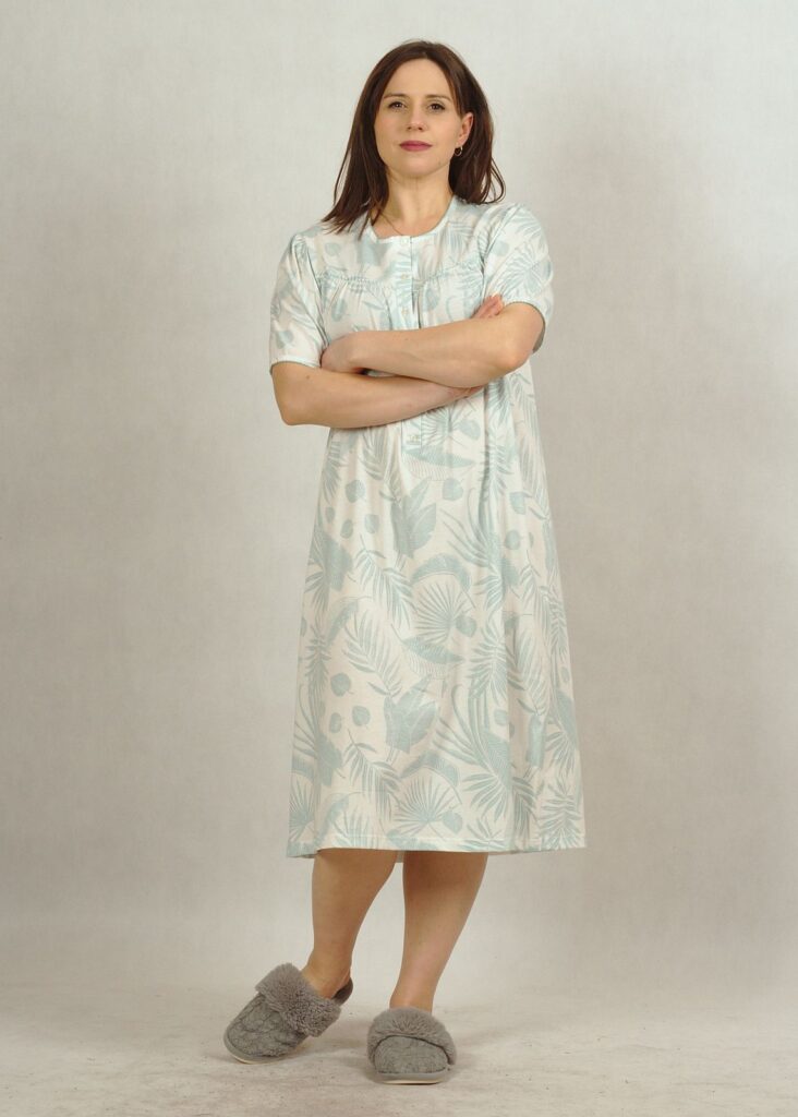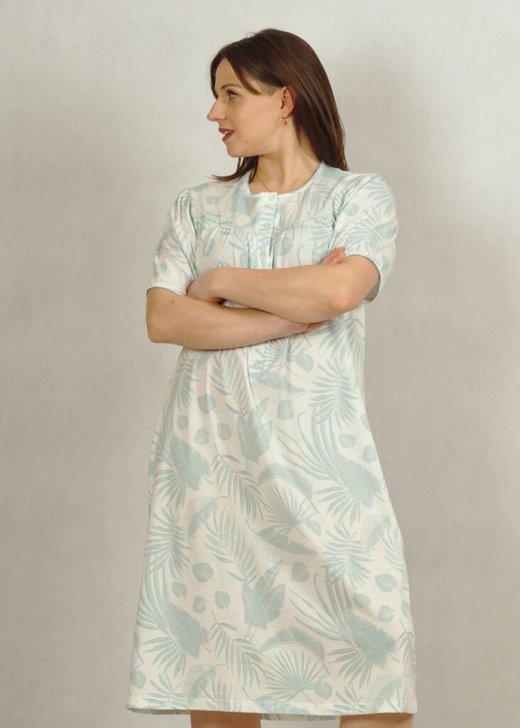 Koszula nocna, o długości midi, z dekoltem z tzw. “karczkiem” , to najczęściej wybierana opcja dla dojrzałych Dam.
