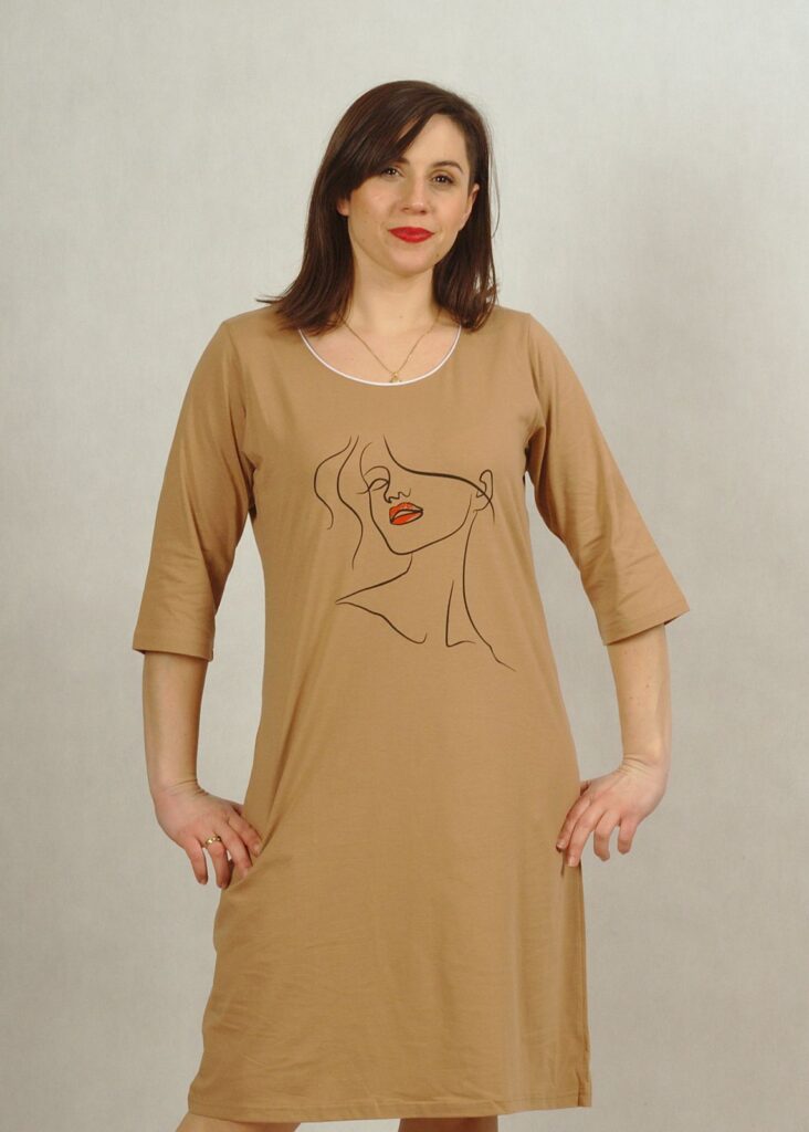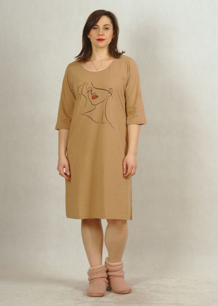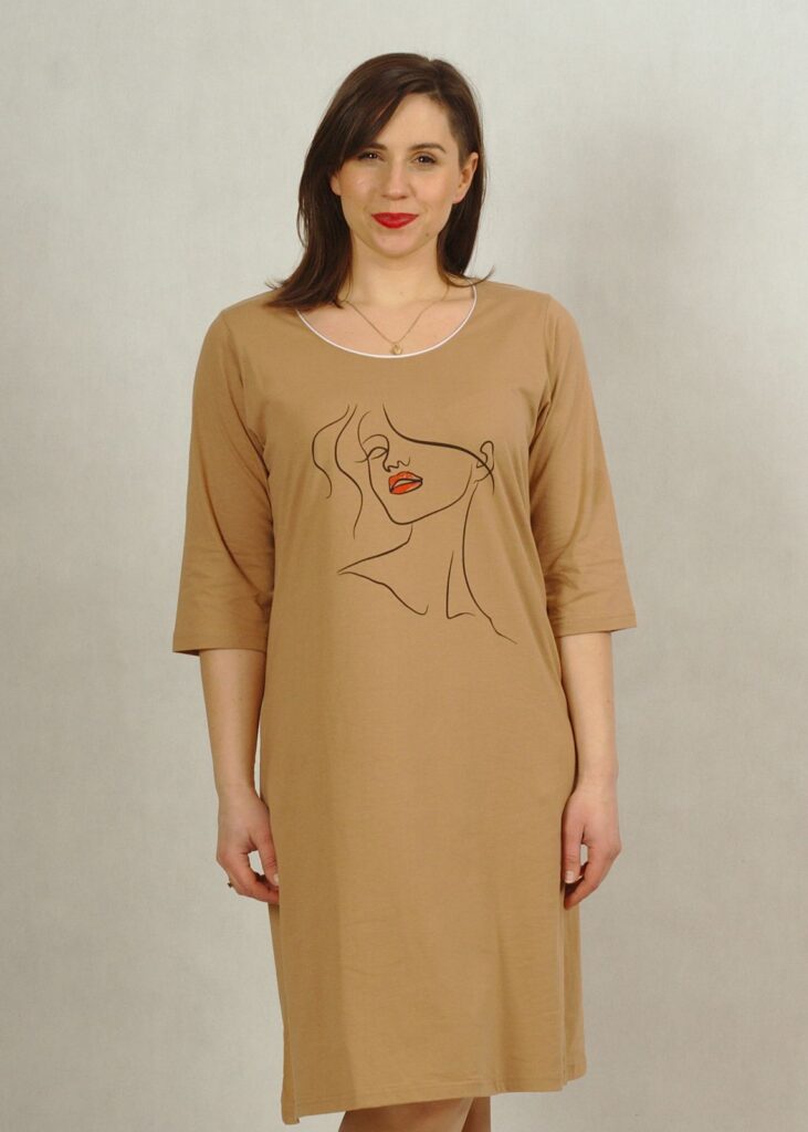 Koszula nocna o prostym fasonie w kolorze brązowym* uszyta jest z najwyższej jakości polskiej bawełny 100%.