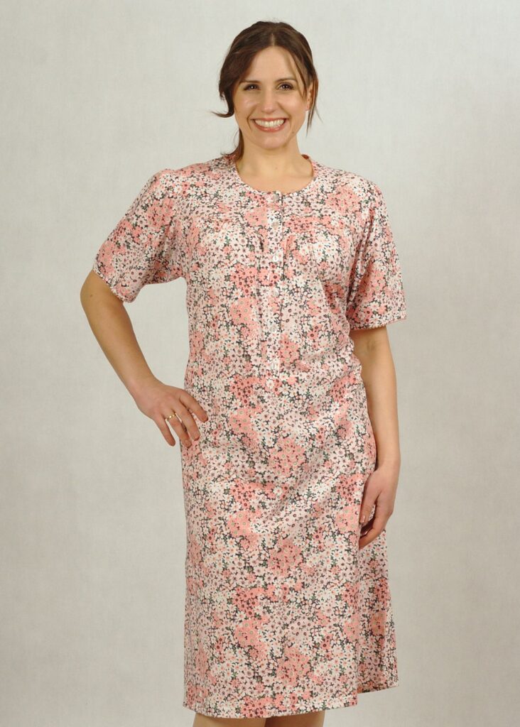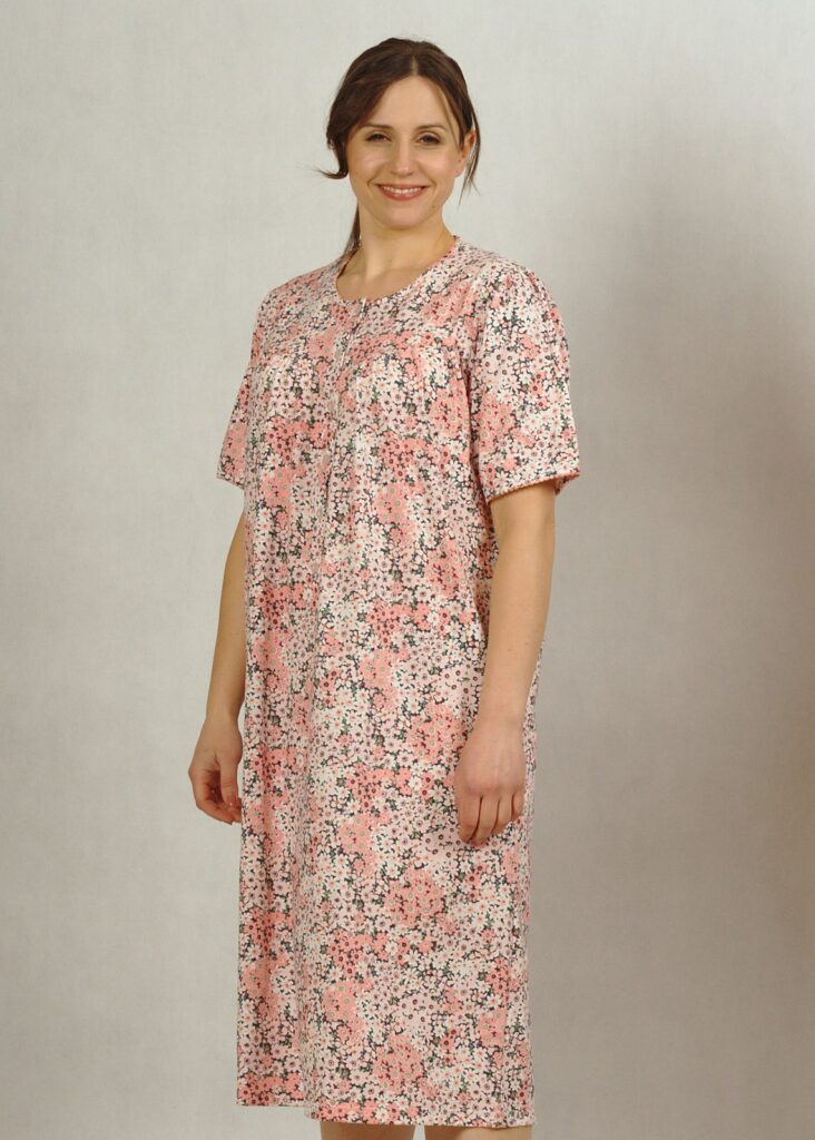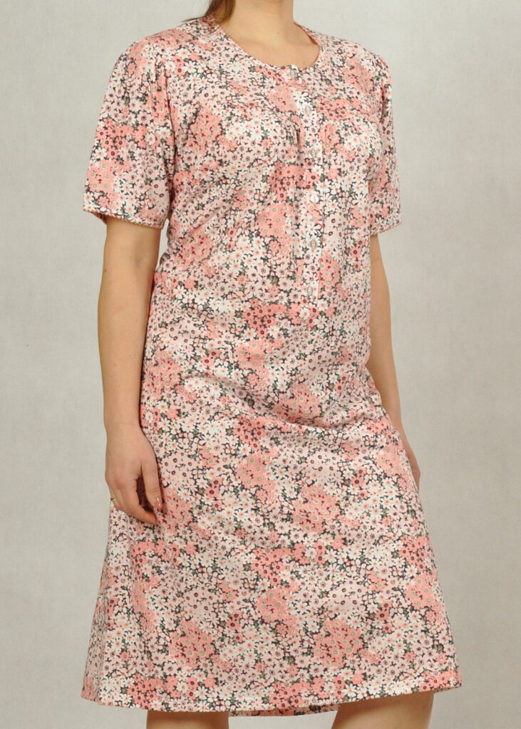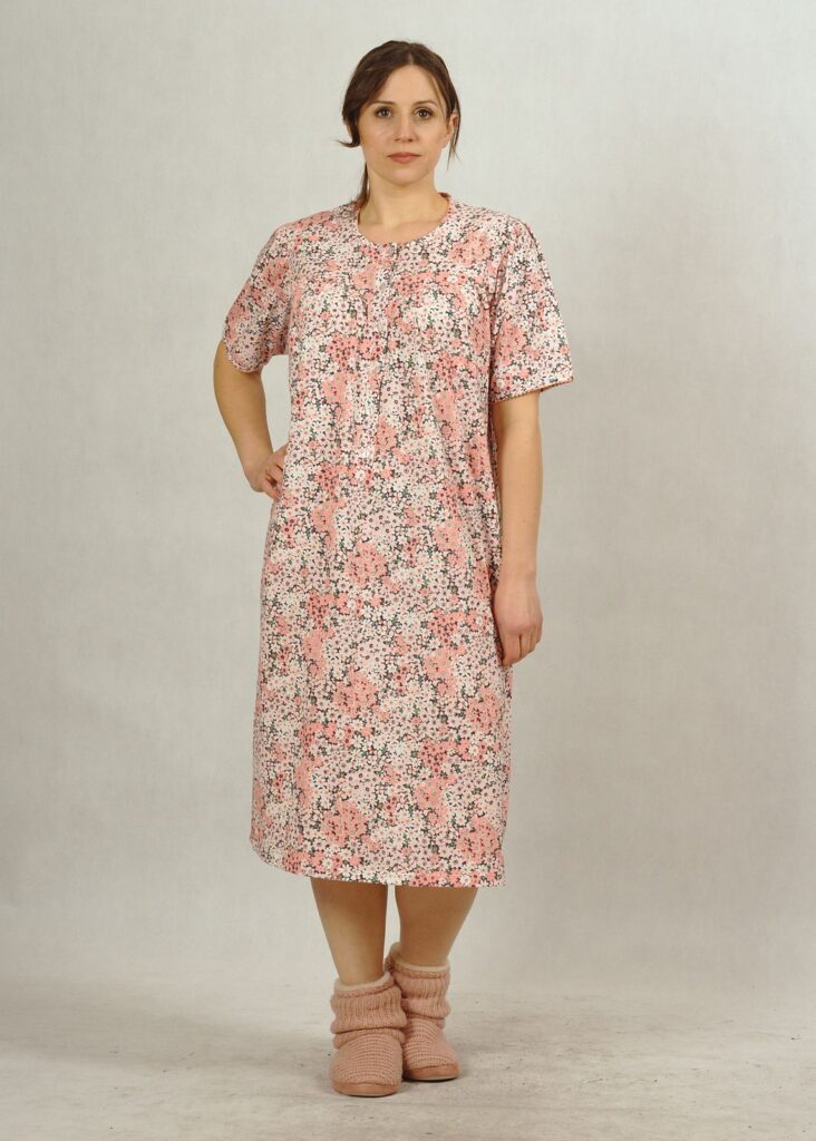 Koszula nocna, o długości midi,  z dekoltem z tzw. “karczkiem” , to najczęściej wybierana opcja dla dojrzałych Dam.