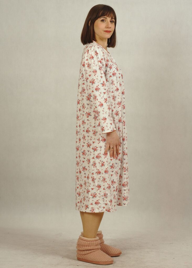 Koszula nocna, o długości midi, z dekoltem z tzw. “karczkiem” , to najczęściej wybierana opcja dla dojrzałych Dam.