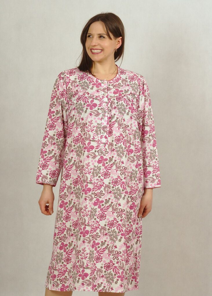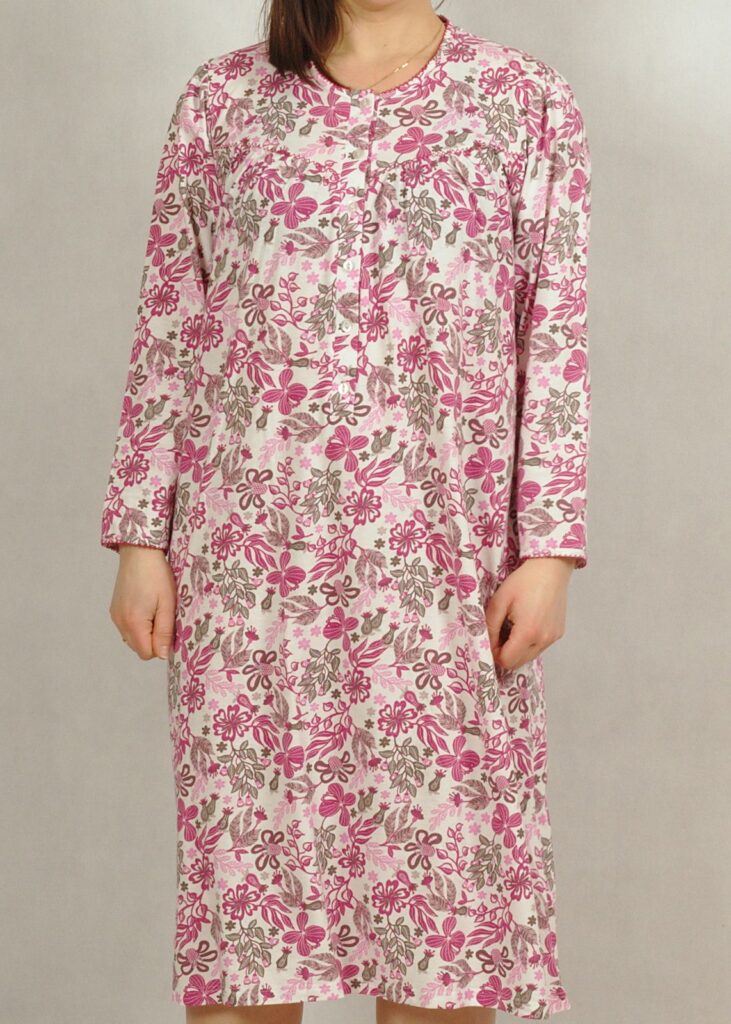 Koszula nocna, o długości midi, z dekoltem z tzw. “karczkiem” , to najczęściej wybierana opcja dla dojrzałych Dam.