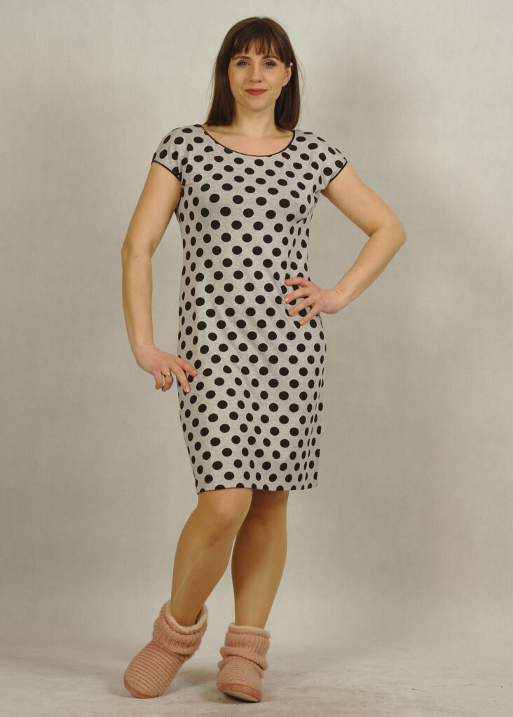 Koszula nocna z wiskozy szara w czarne grochy /428/