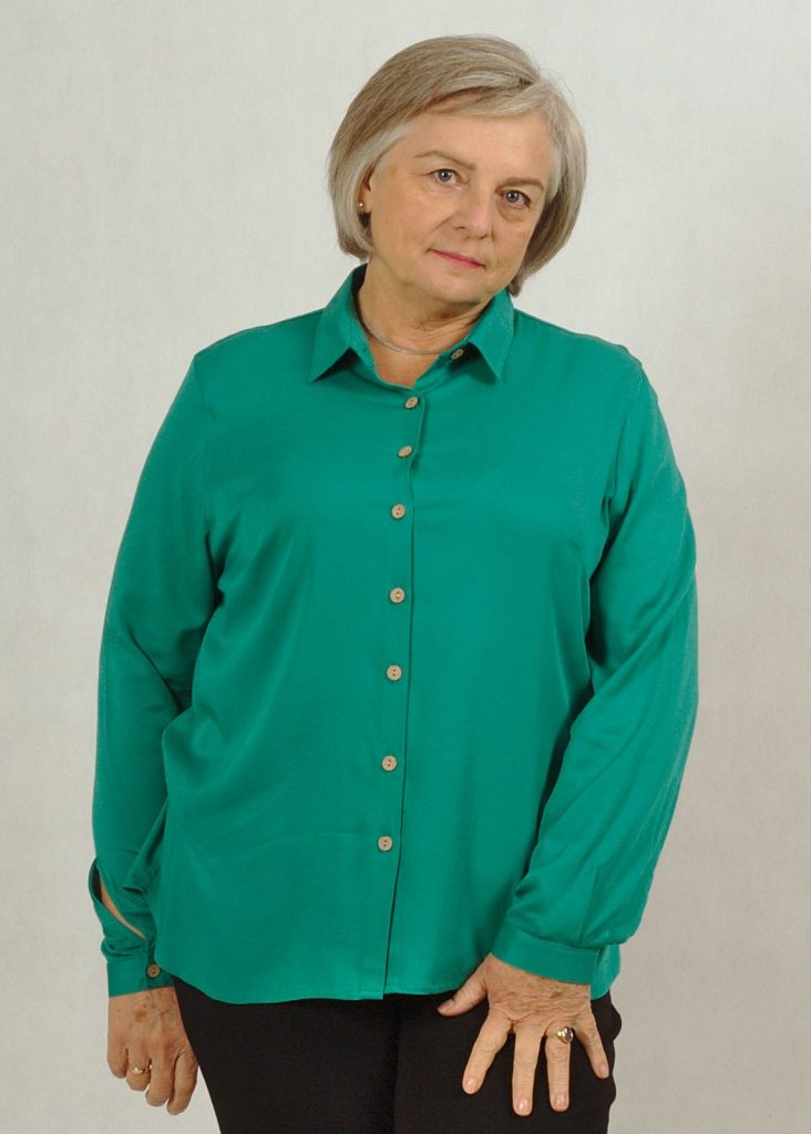 Klasyczna, ponadczasowa, elegancka bluzka koszulowa w różnych wersjach kolorystycznych.