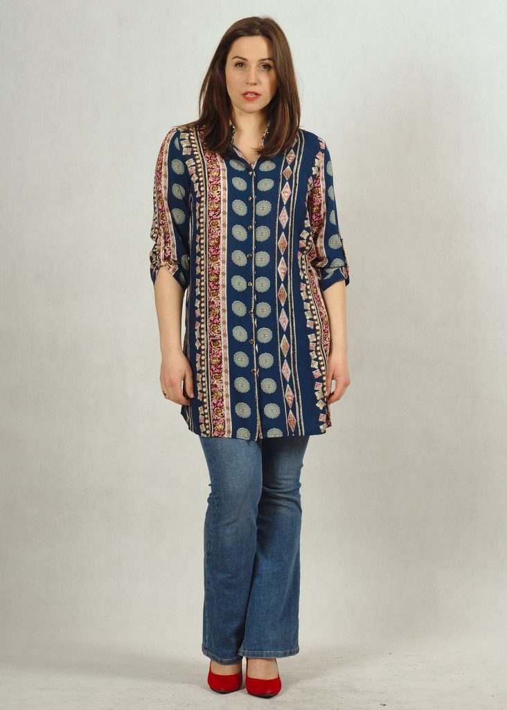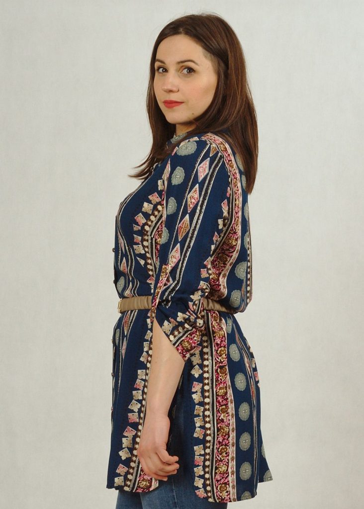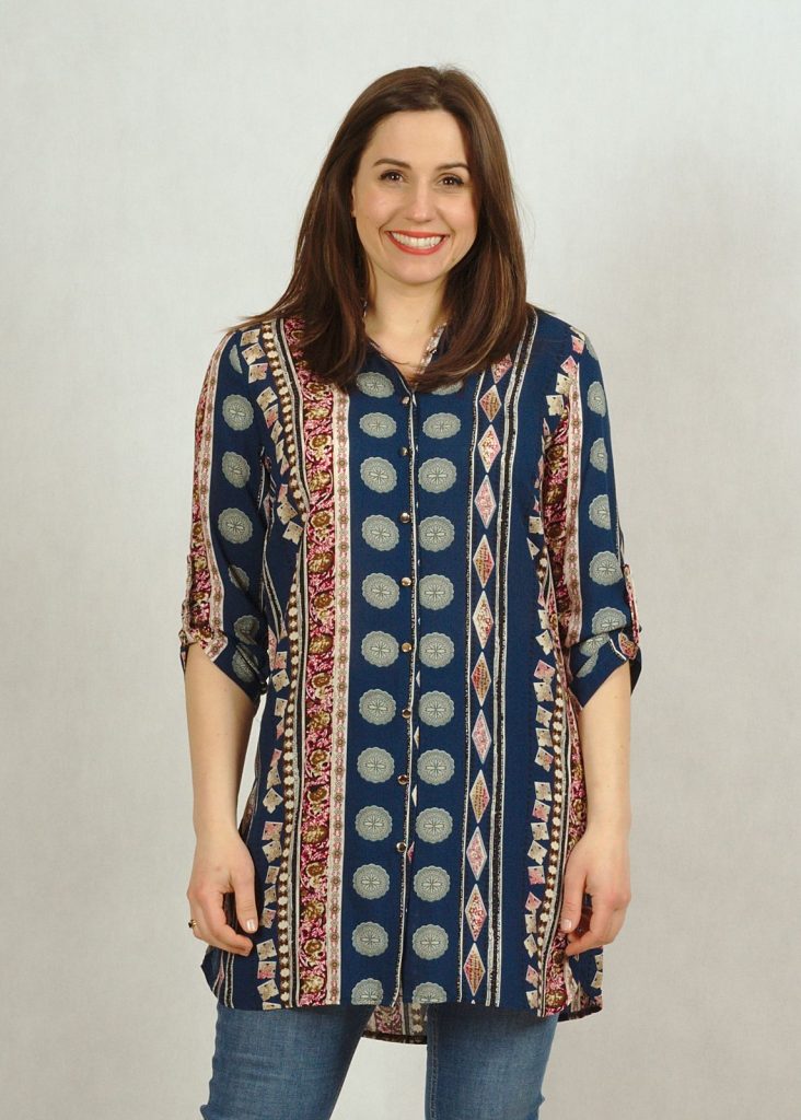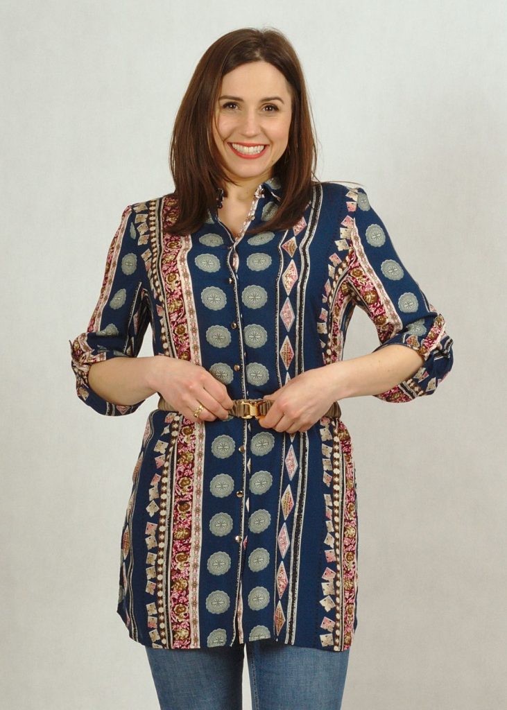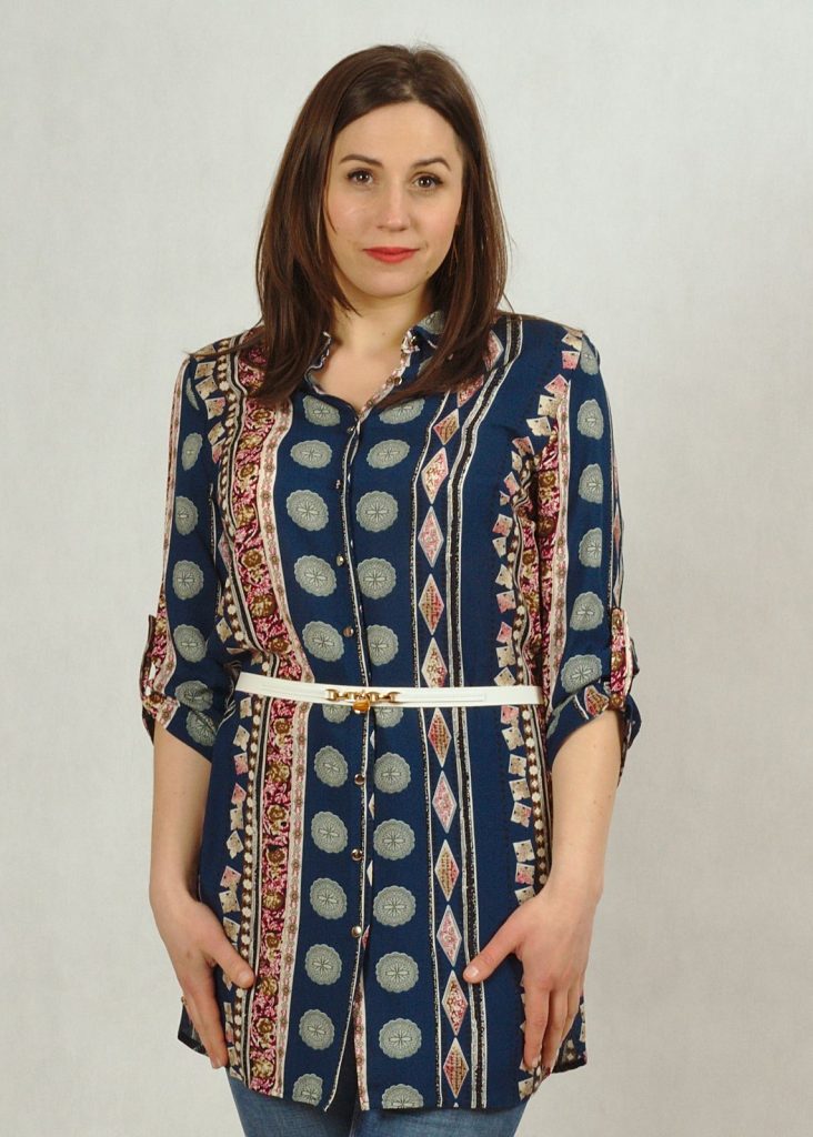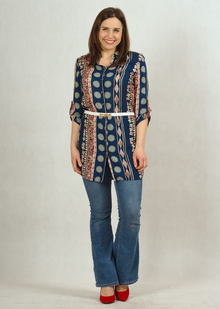 Tunika koszulowa długa występuje w rozmiarach standardowych i plus size.