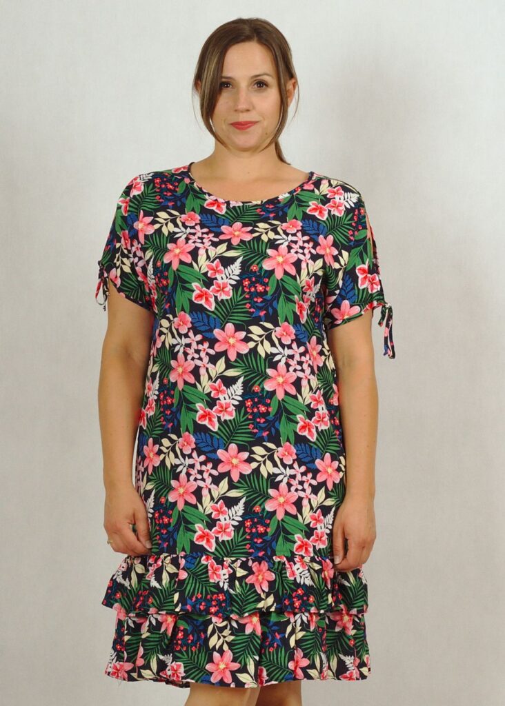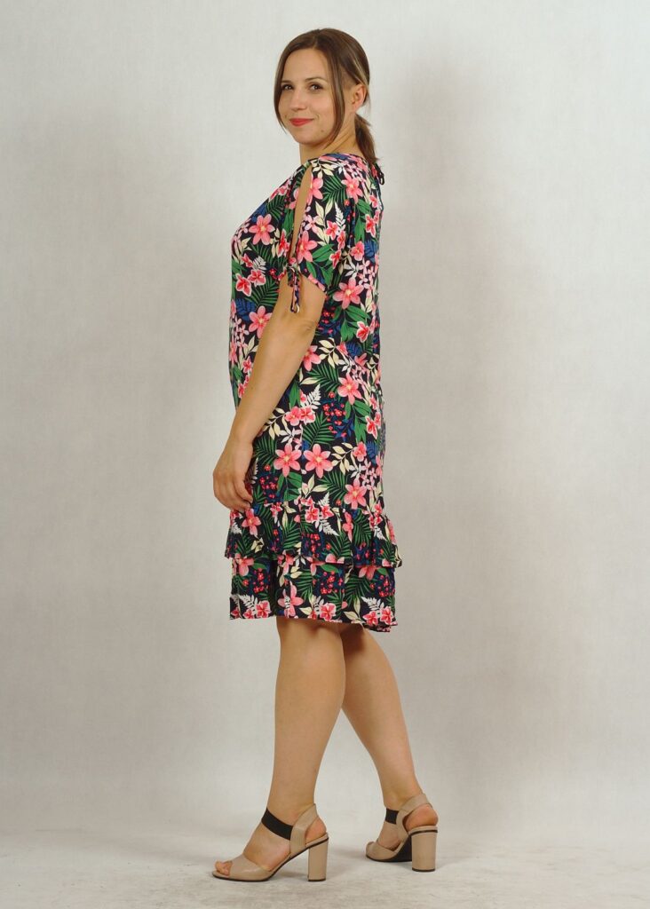 Piękna, letnia sukienka wykonana z wiskozy 100%. Zapewni Ci komfort w upalne dni, materiał “oddycha” i jest przyjemny dla skóry.