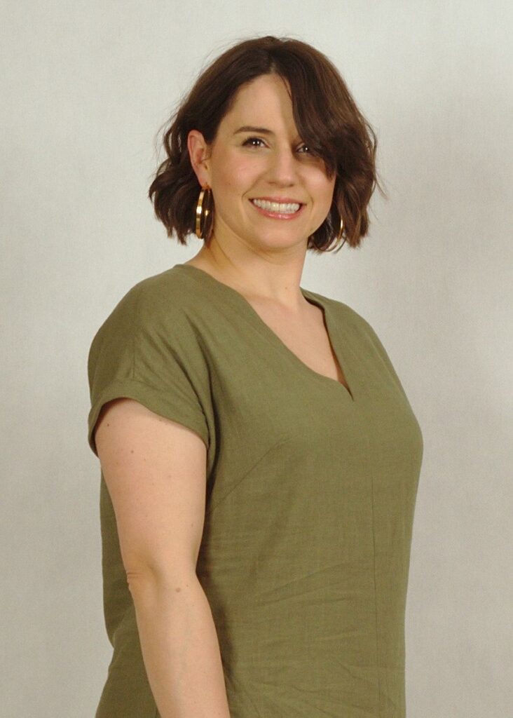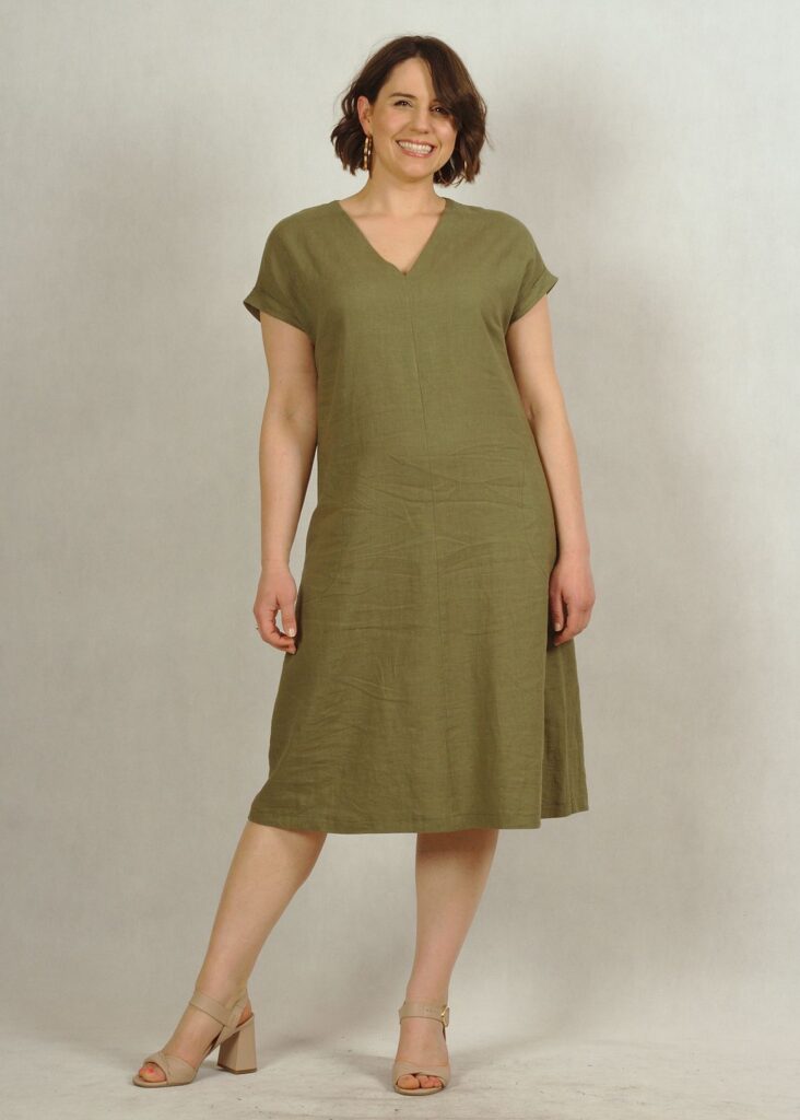 Sukienka ma kolor oliwkowy, bardzo twarzowy*.