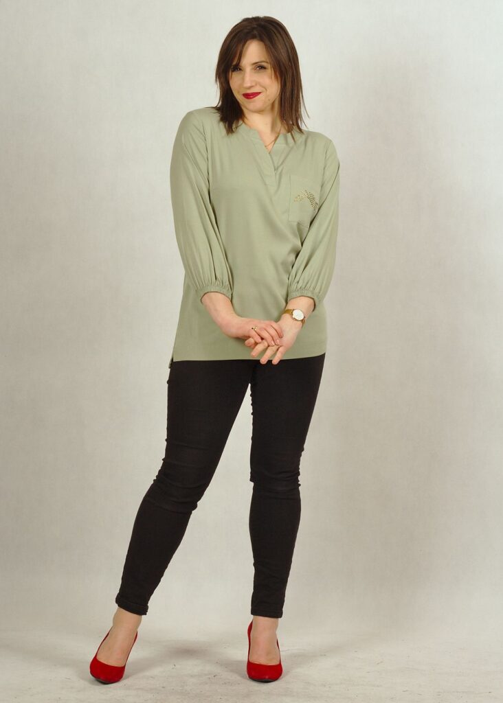 Bluzka jest dopracowana w każdym calu – jej tył jest minimalnie dłuższy, co podnosi walory tej bluzki niewątpliwie.
