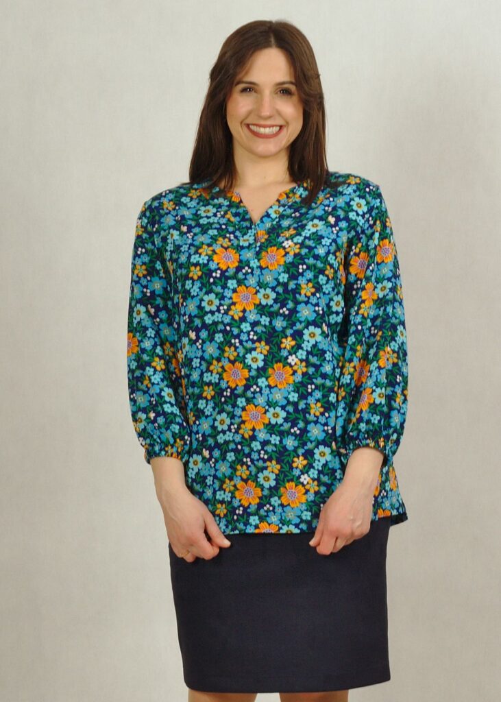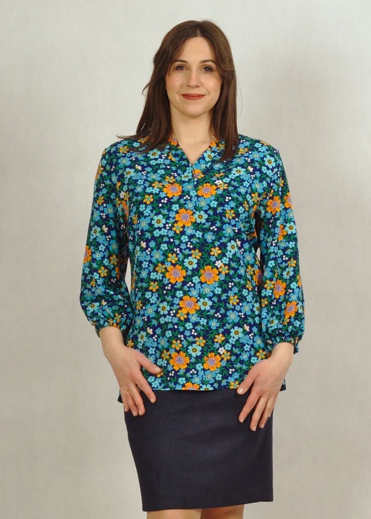 Niebieska* bluzka z wiskozy w kwiatki to idealna propozycja na wiosenne dni.