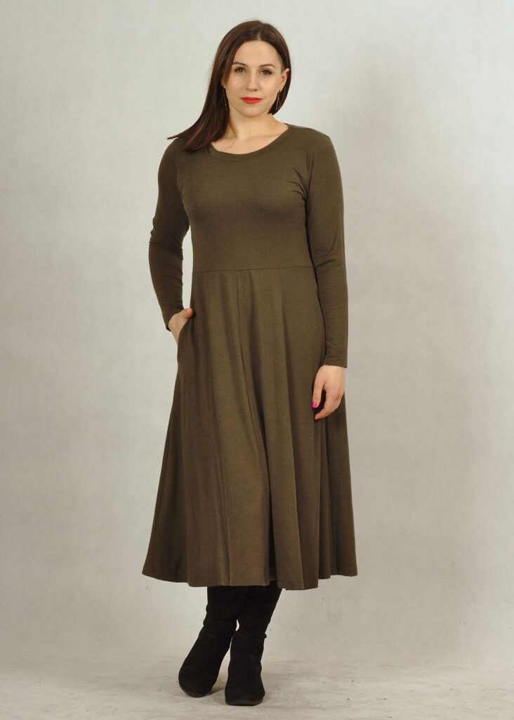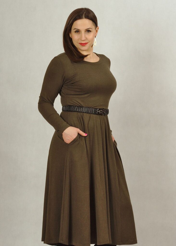 Jednokolorowa sukienka z ciepłej, totalnie miłej w dotyku dzianiny to doskonały wybór, jeśli cenisz sobie wygodę i elegancję jednocześnie.