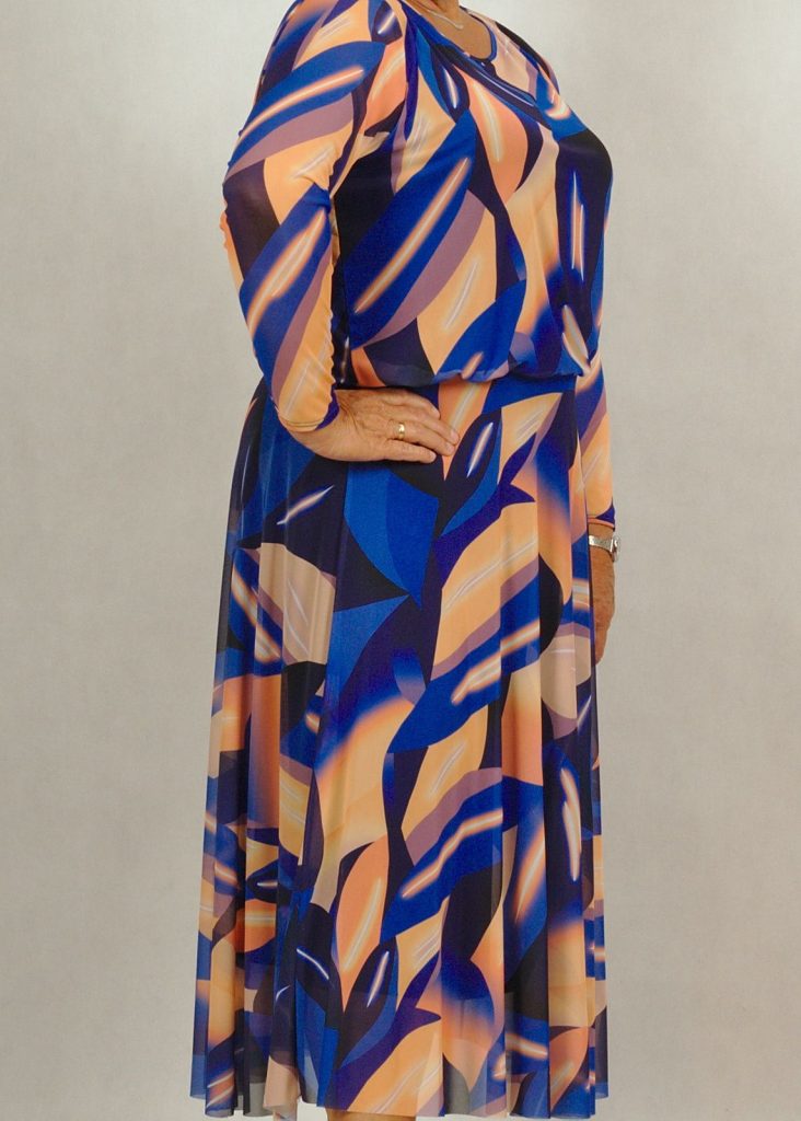 Piękna długa chabrowa suknia z siatki z podszewką wiskozową /618/