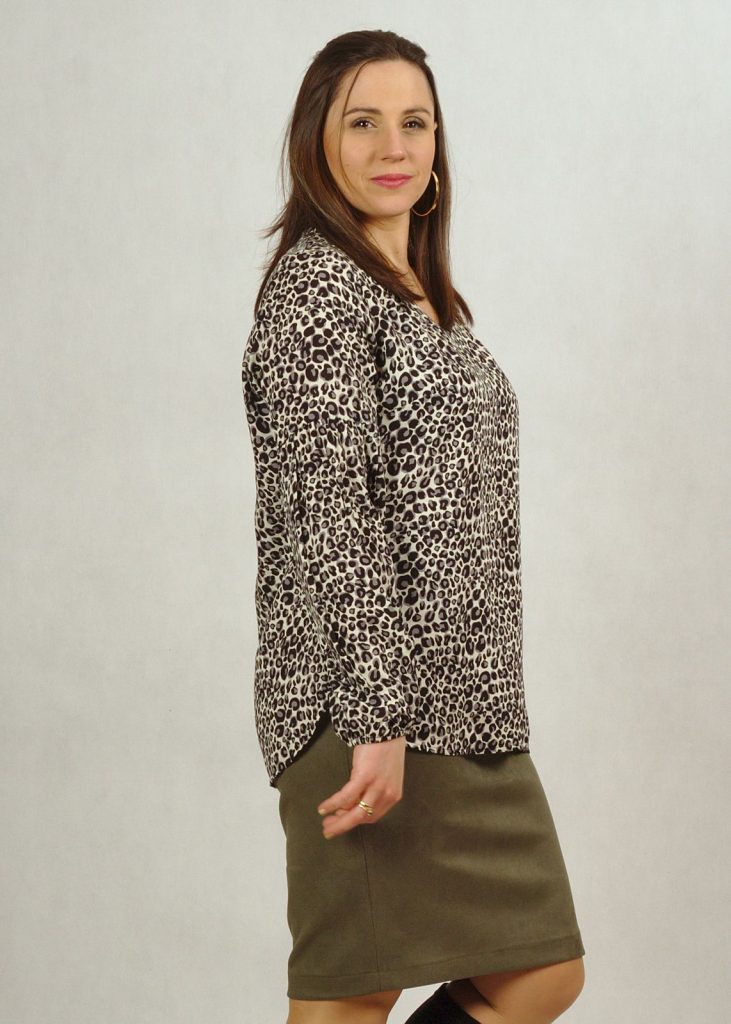 Ma wyjątkowy dekolt w serek, z wykończoną stójką. Długość bluzki sięga za biodra, dzięki temu poczujesz się komfortowo. Bluzka świetnie może wyglądać włożona do spodni lub spódnicy. Zawsze masz wybór.