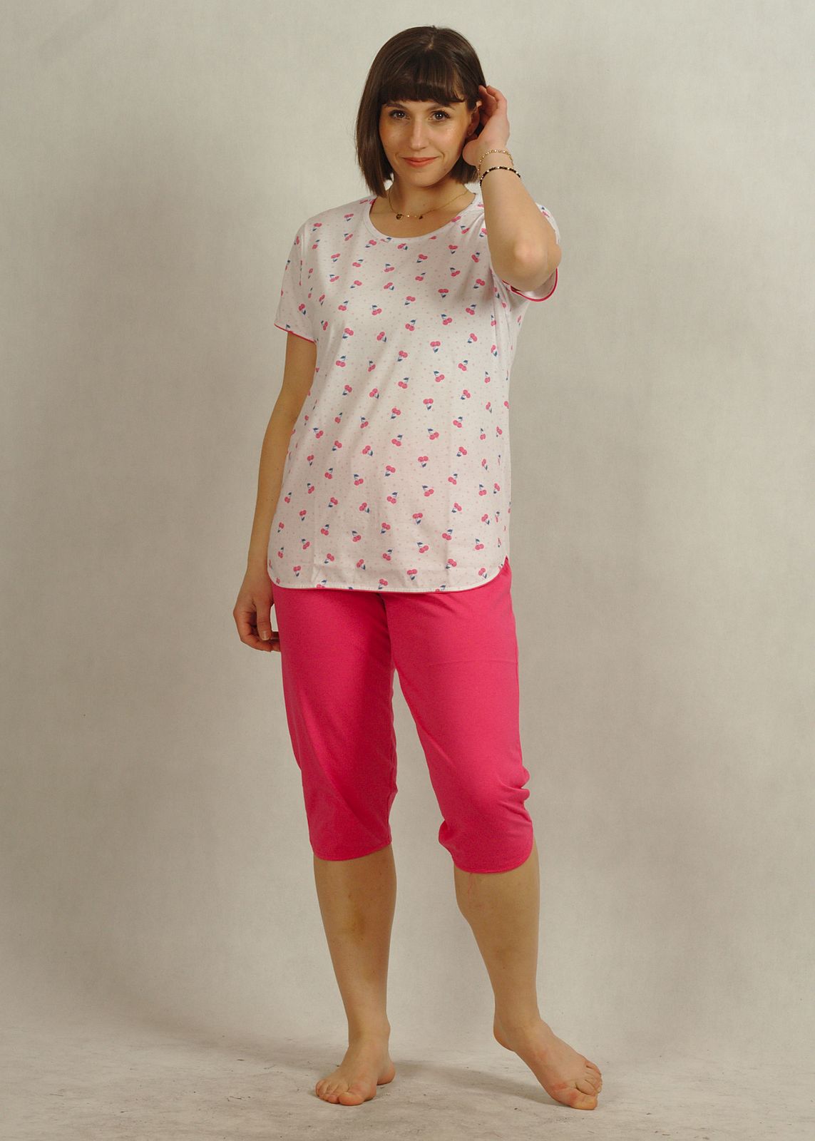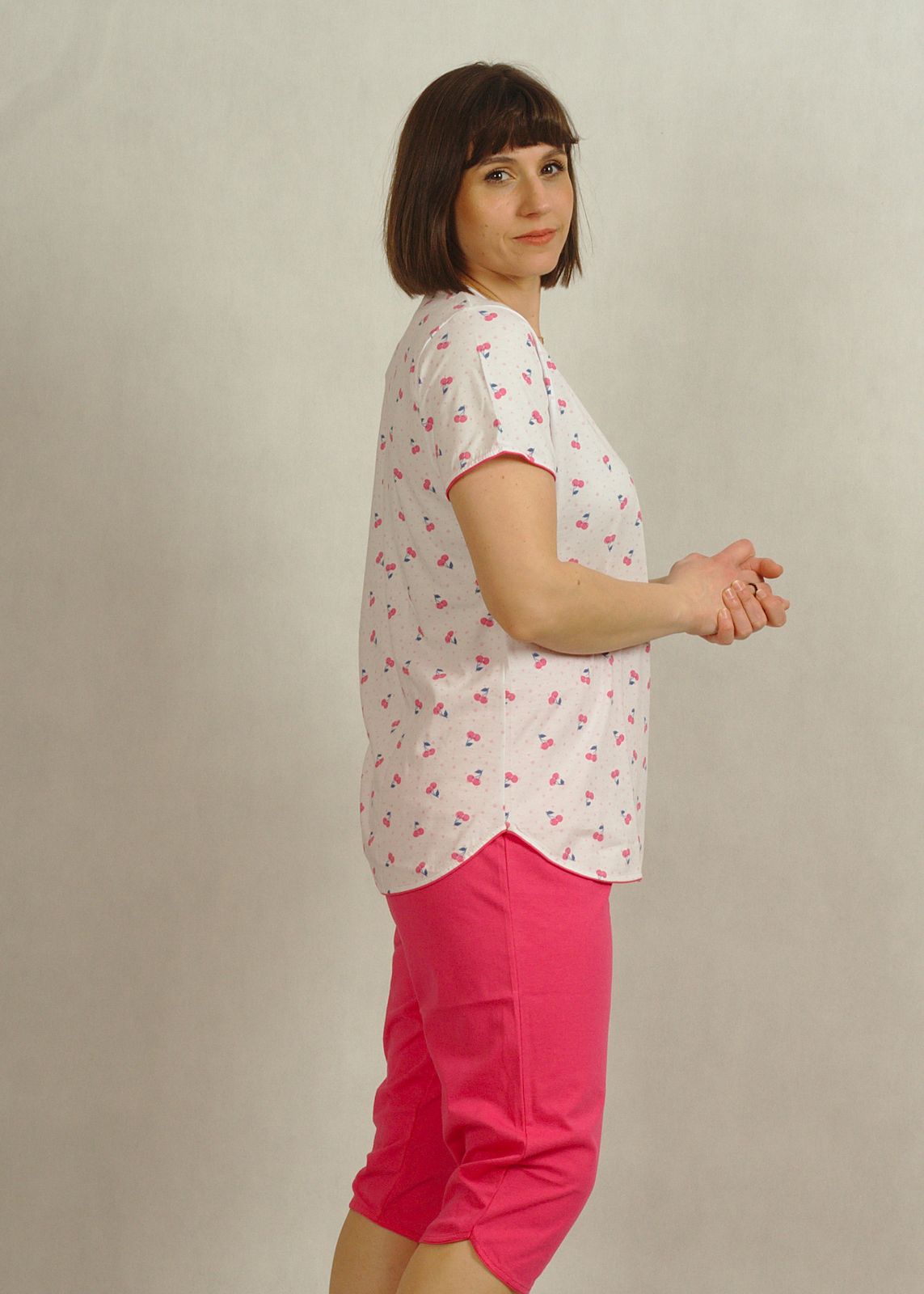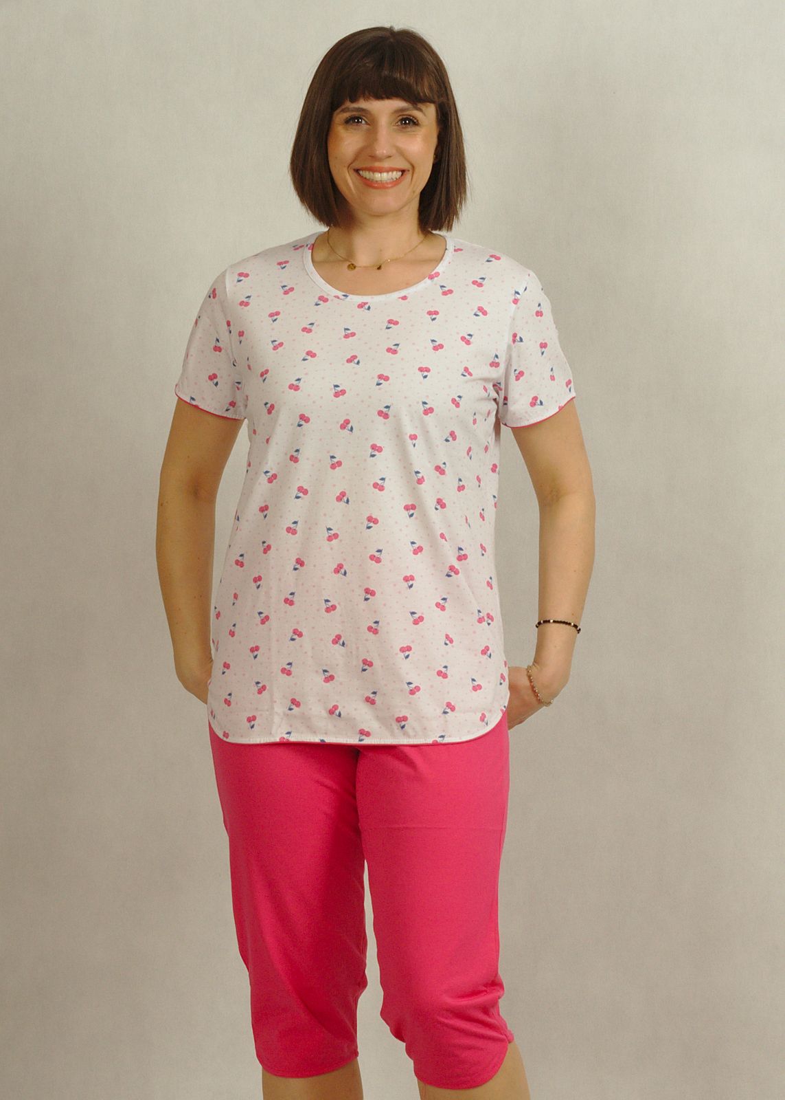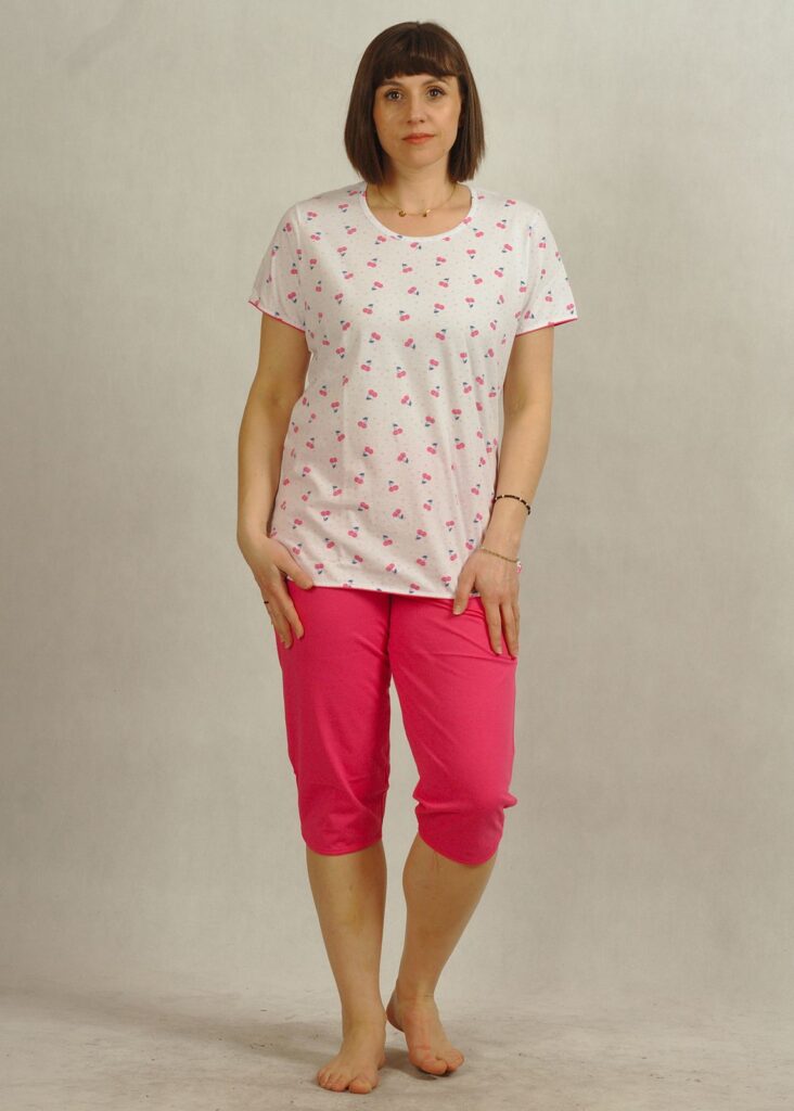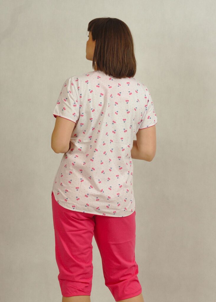 Śliczna bawełniana piżama w małe różowe wisienki, uszyta z najwyższej jakości polskiej bawełny 100%.