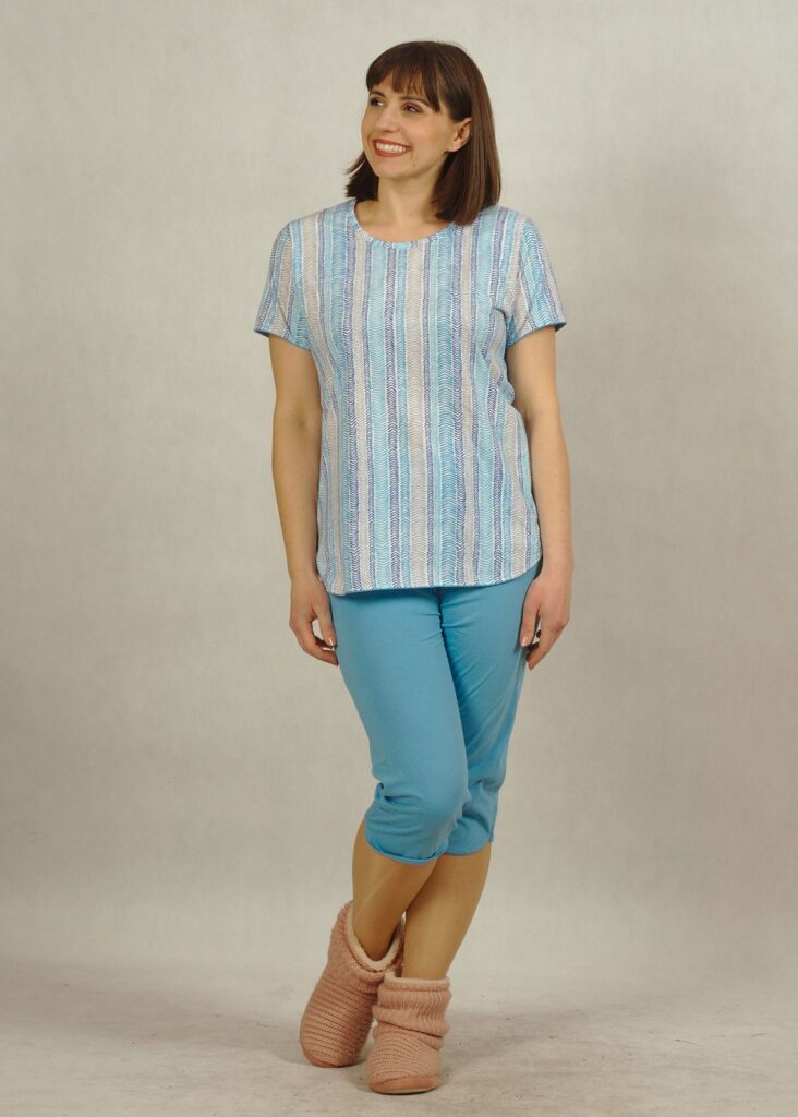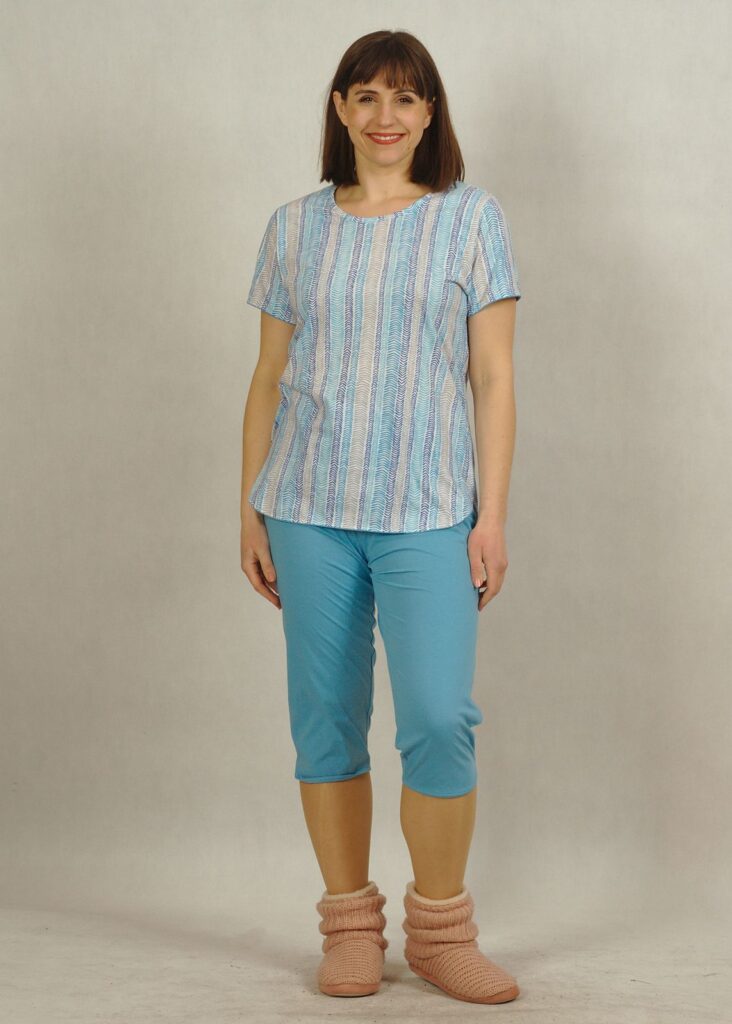 Piżama niebieska we wzorki z krótkim rękawem plus size /394/