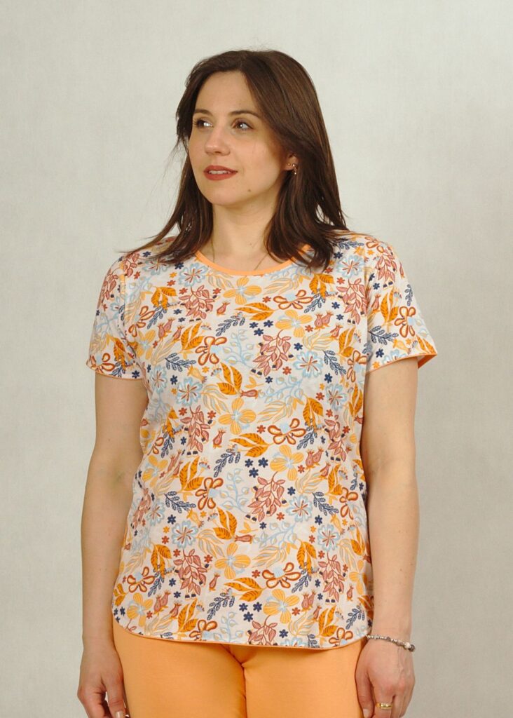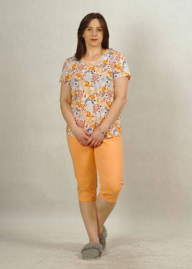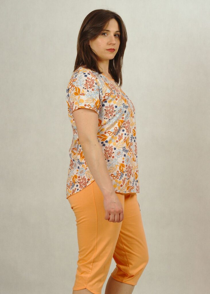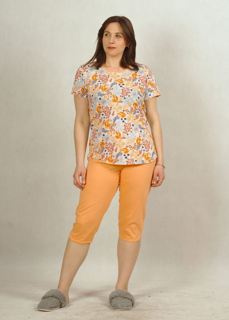 Piżama pomarańczowa w kwiatki z krótkim rękawem plus size /394/