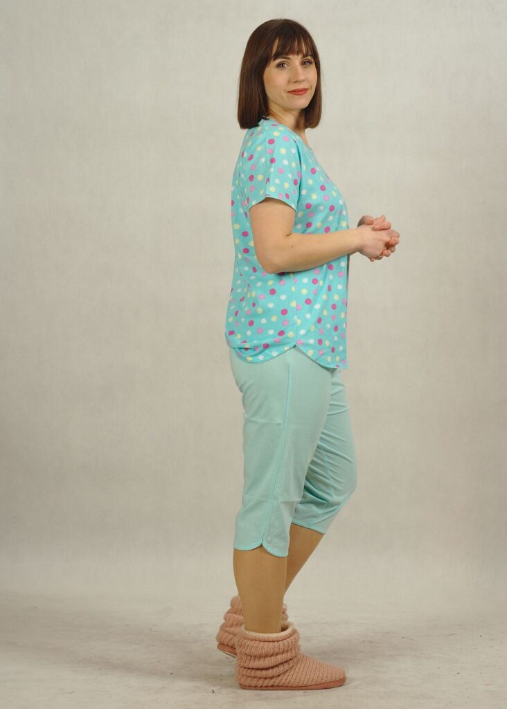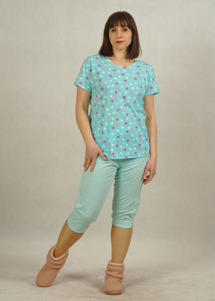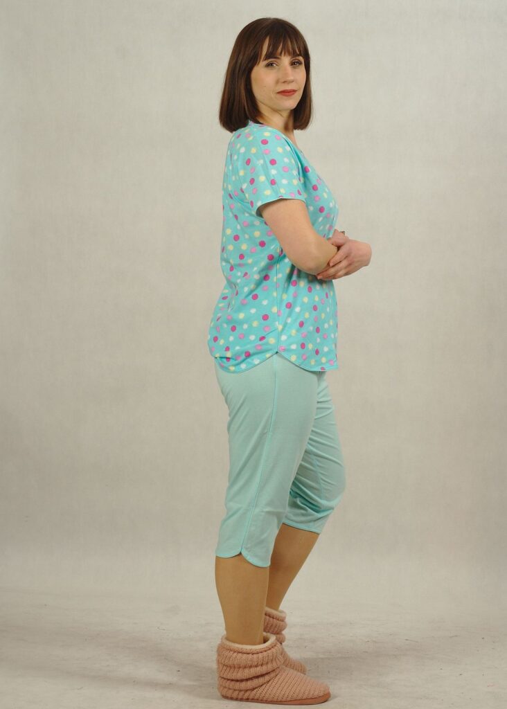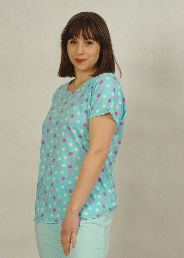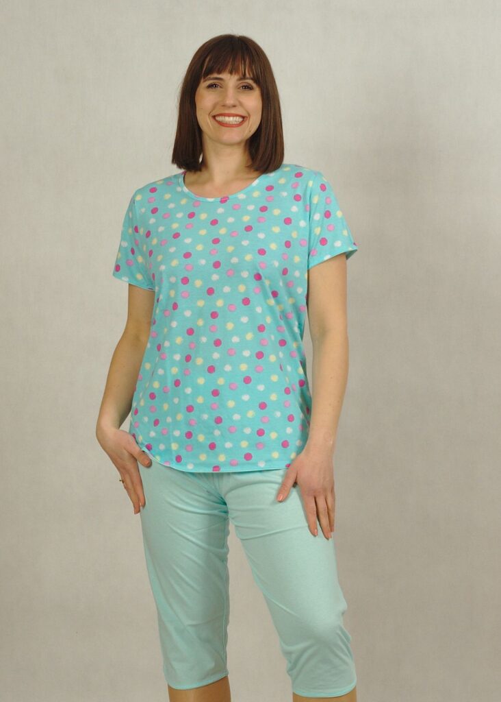 Śliczna piżama turkusowa w kropki uszyta z najwyższej jakości polskiej bawełny 100%.