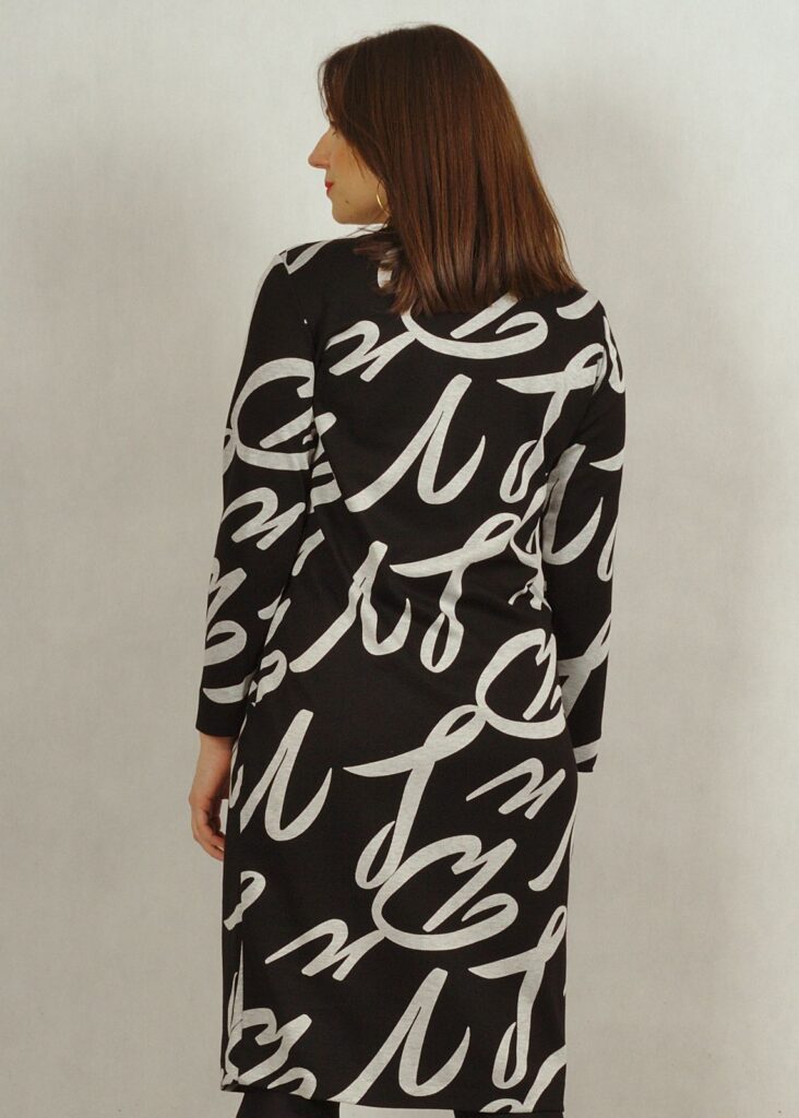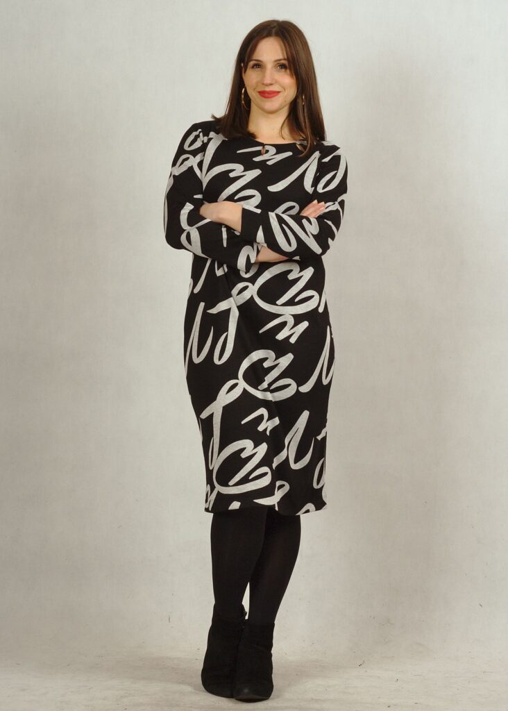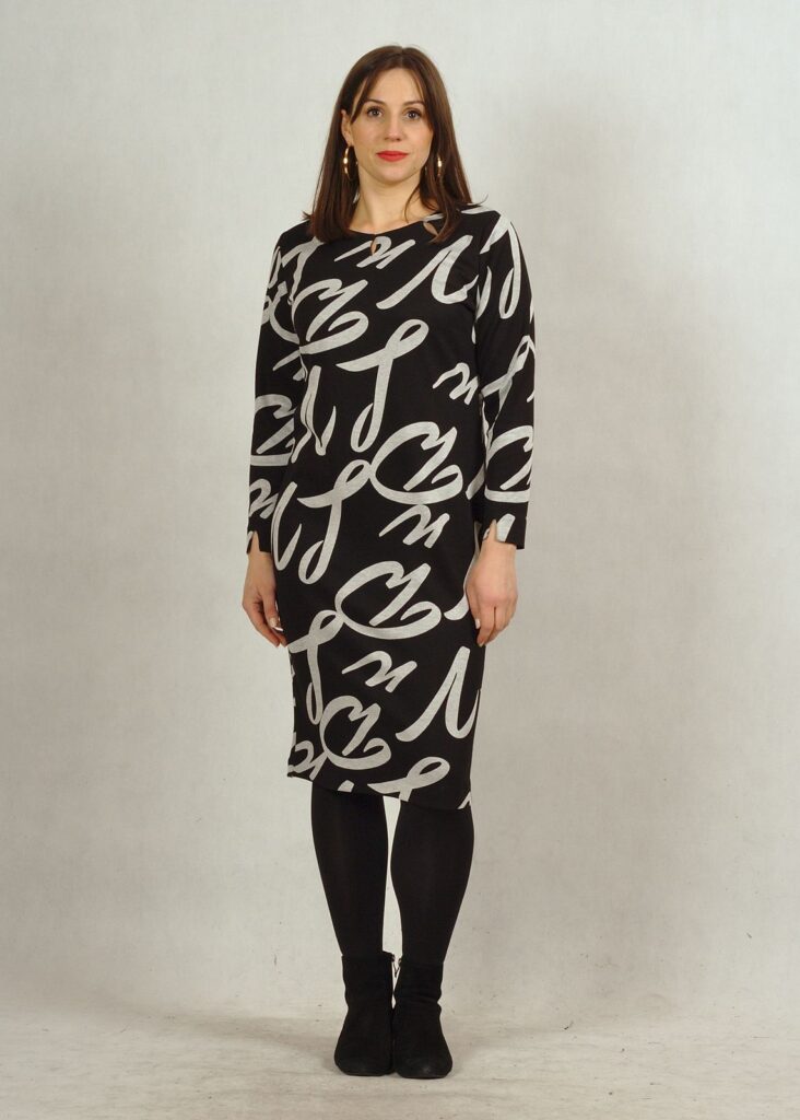 Sukienka z długim rękawem zapewnia komfort noszenia w chłodniejsze dni, a jej fason podkreśla elegancję.