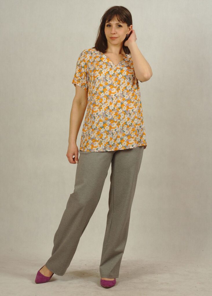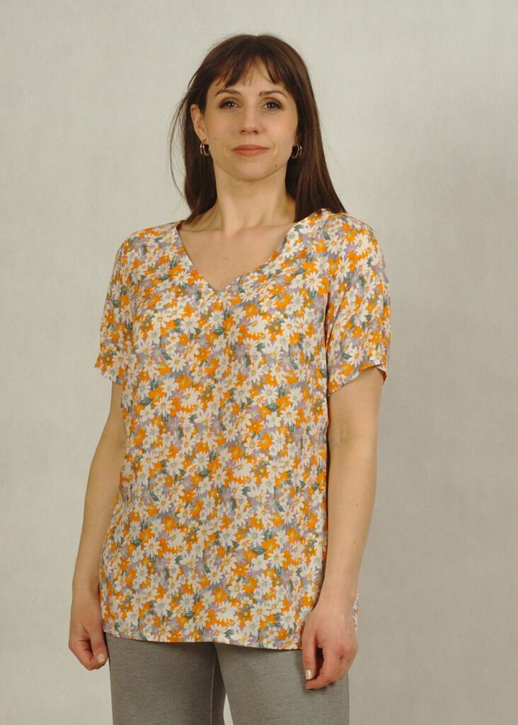 Bluzka jest uszyta w rozmiarach plus size i standard size.