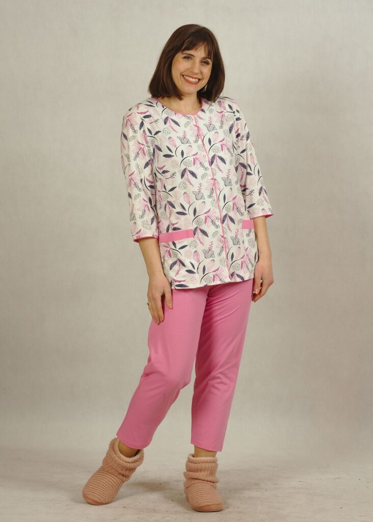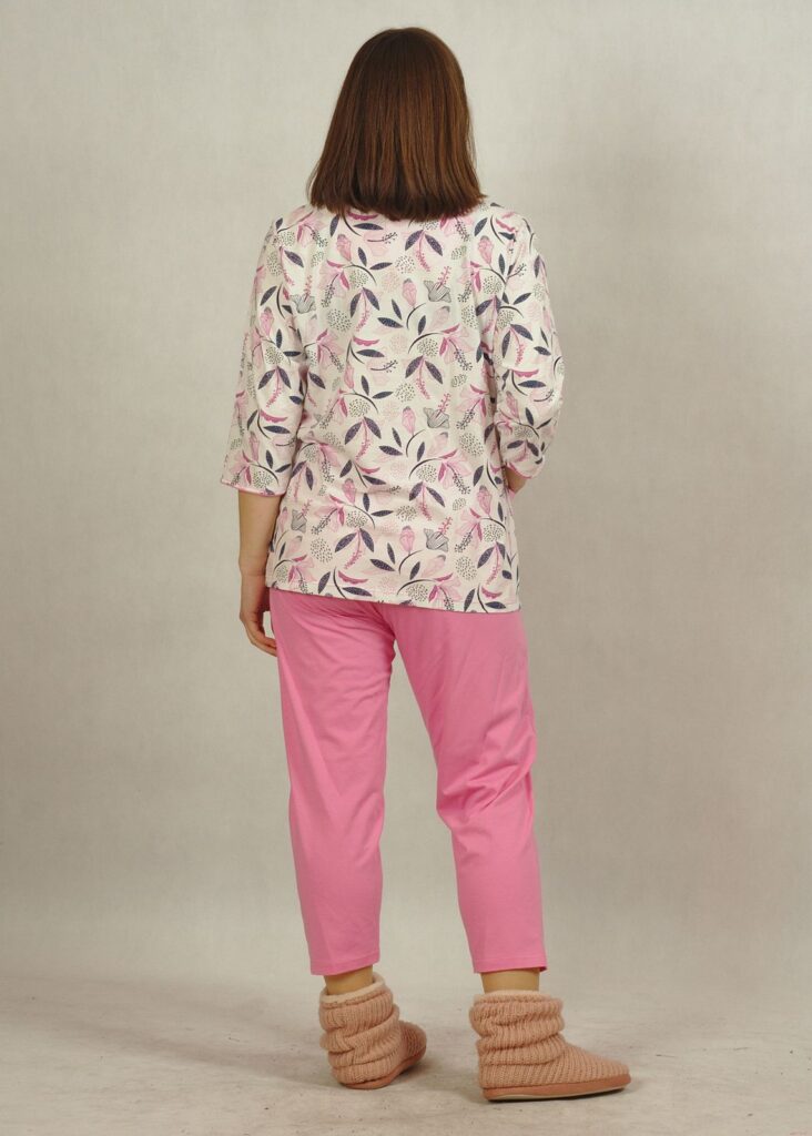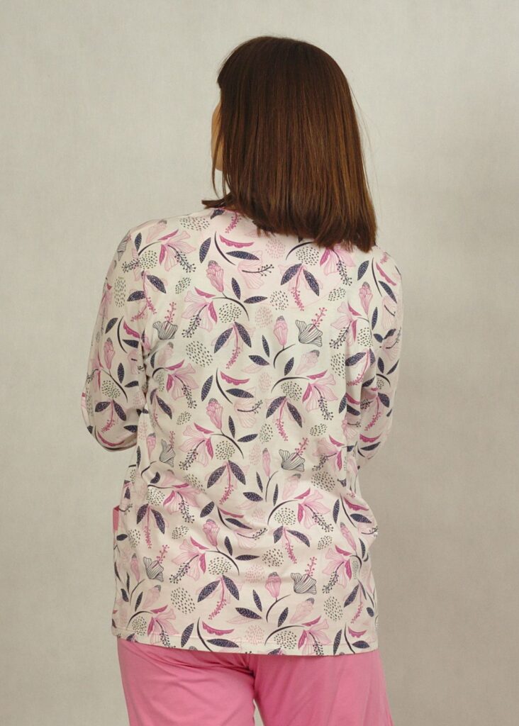 Różowa piżama rozpinana z kieszeniami w kwiatki plus size /168/