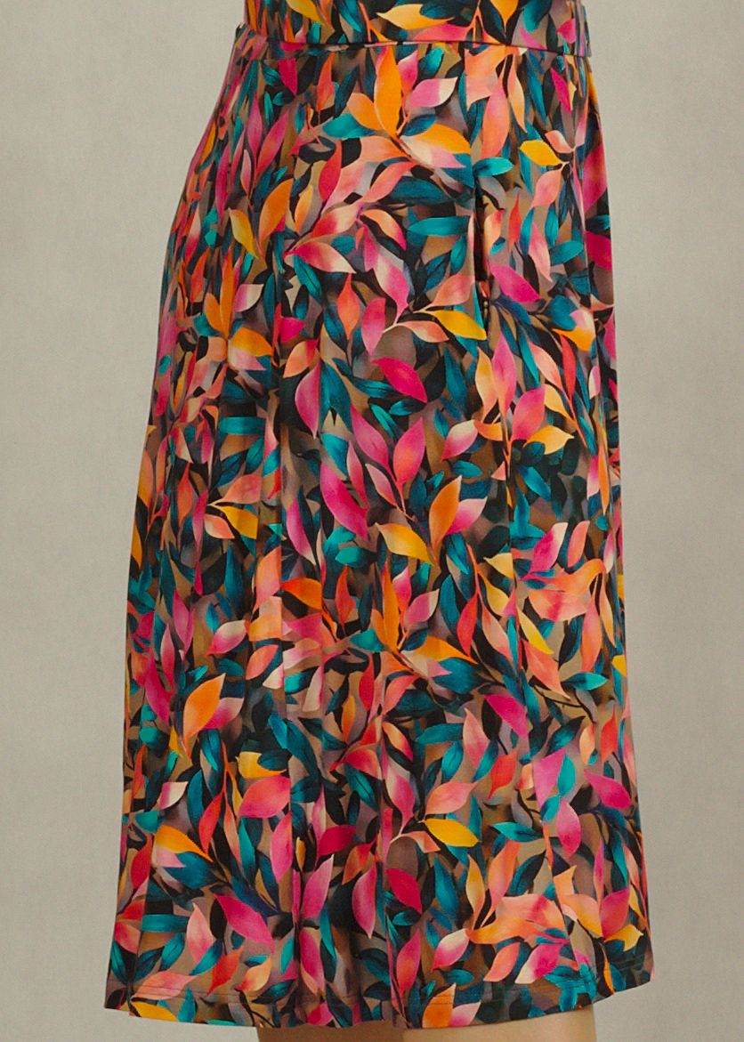 Wzór w drobne listki ożywia całość, a różowy kolor dodaje kobiecego uroku.