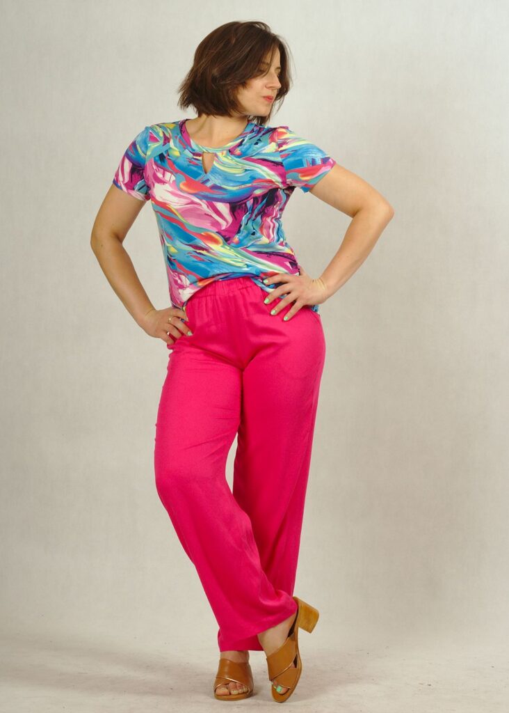 Spodnie doskonale pasują do bluzek zarówno gładkich, jak i drukowanych z naszej nowej kolekcji.