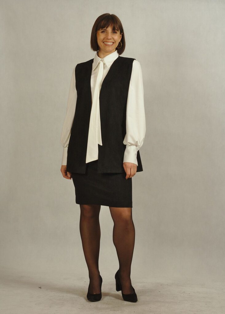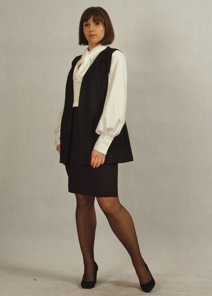 W zależności co dobierzemy na górę, ustalimy charakter spódnicy. Można dopasować do niej sweterek, bluzkę, a na to dobrać żakiet lub pasujący do niej kardigan.