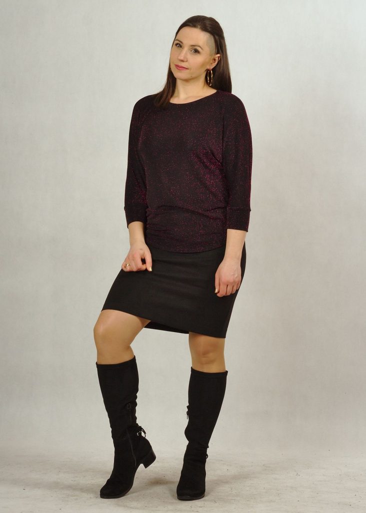 Modelka w spódnicy czarnej ma 165 cm wzrostu i nosi rozmiar L.