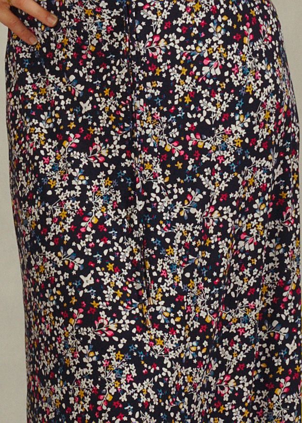 Miłośniczki romantycznych wzorów zakochają się w naszej spódnicy w kwiatki, ozdobionej subtelnym motywem wielokolorowych kwiatków.
