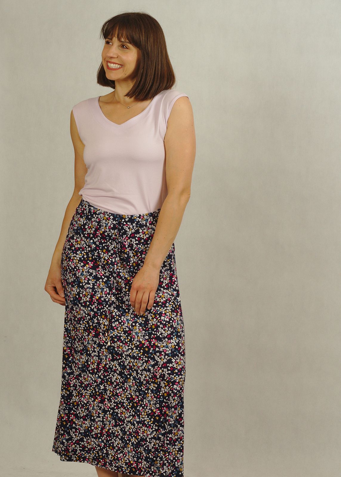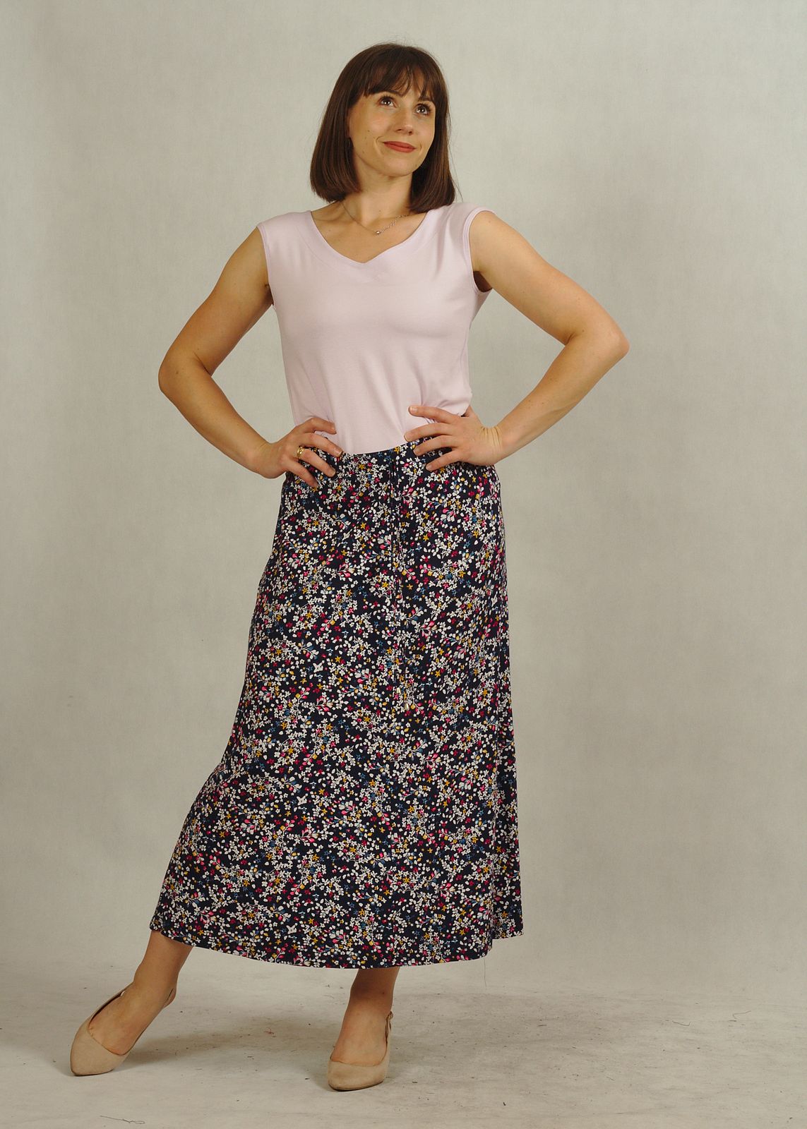 Długość midi to uniwersalny wybór — idealny zarówno do pracy, na spacer, jak i na letnie wyjścia.