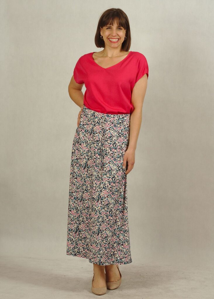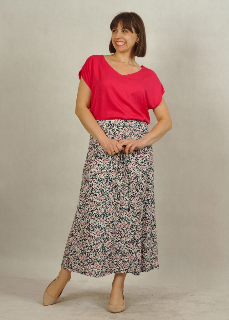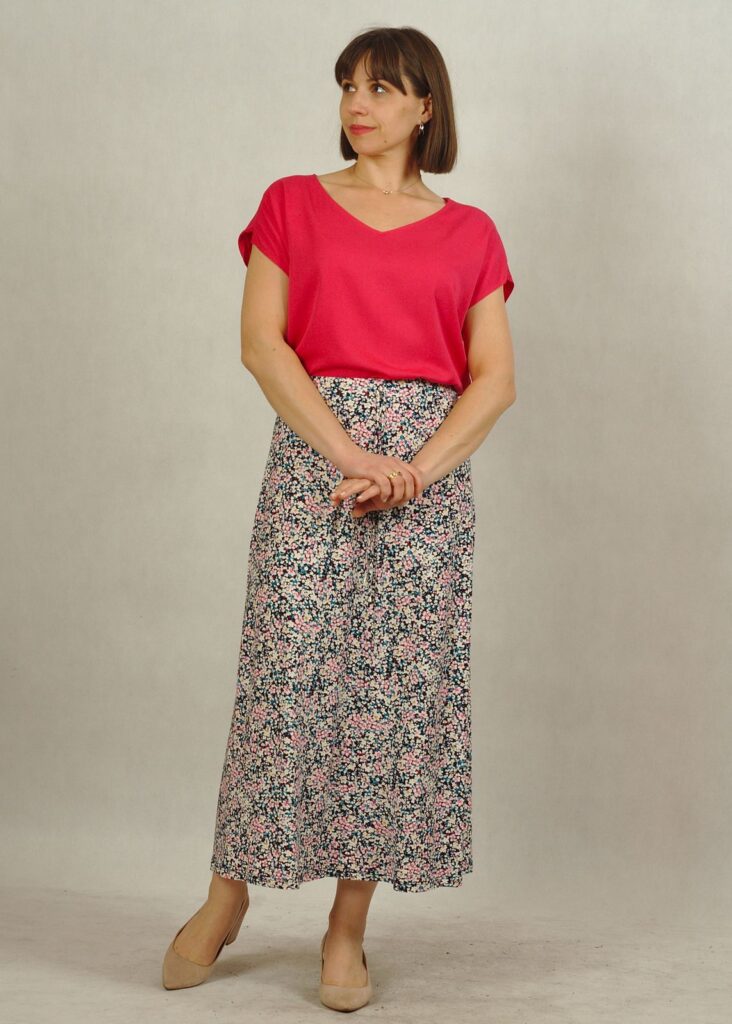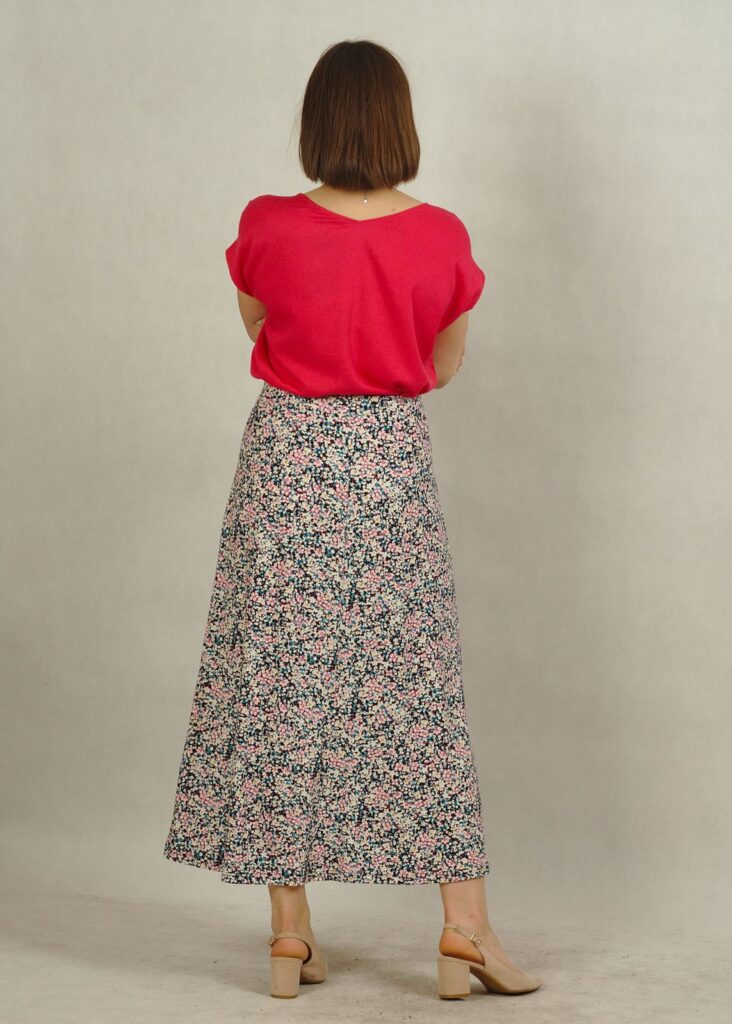 Długość midi to uniwersalny wybór — idealny zarówno do pracy, na spacer, jak i na letnie wyjścia.
